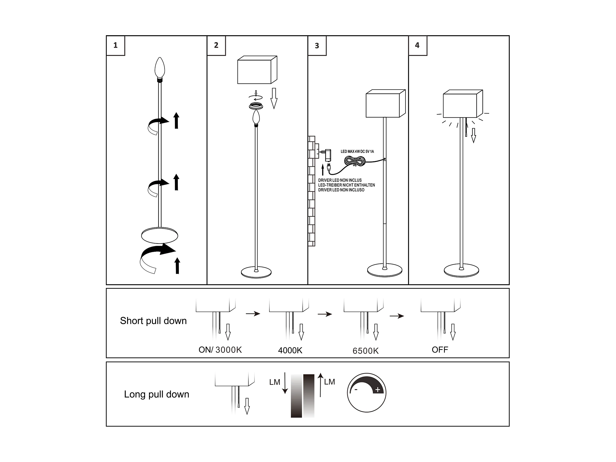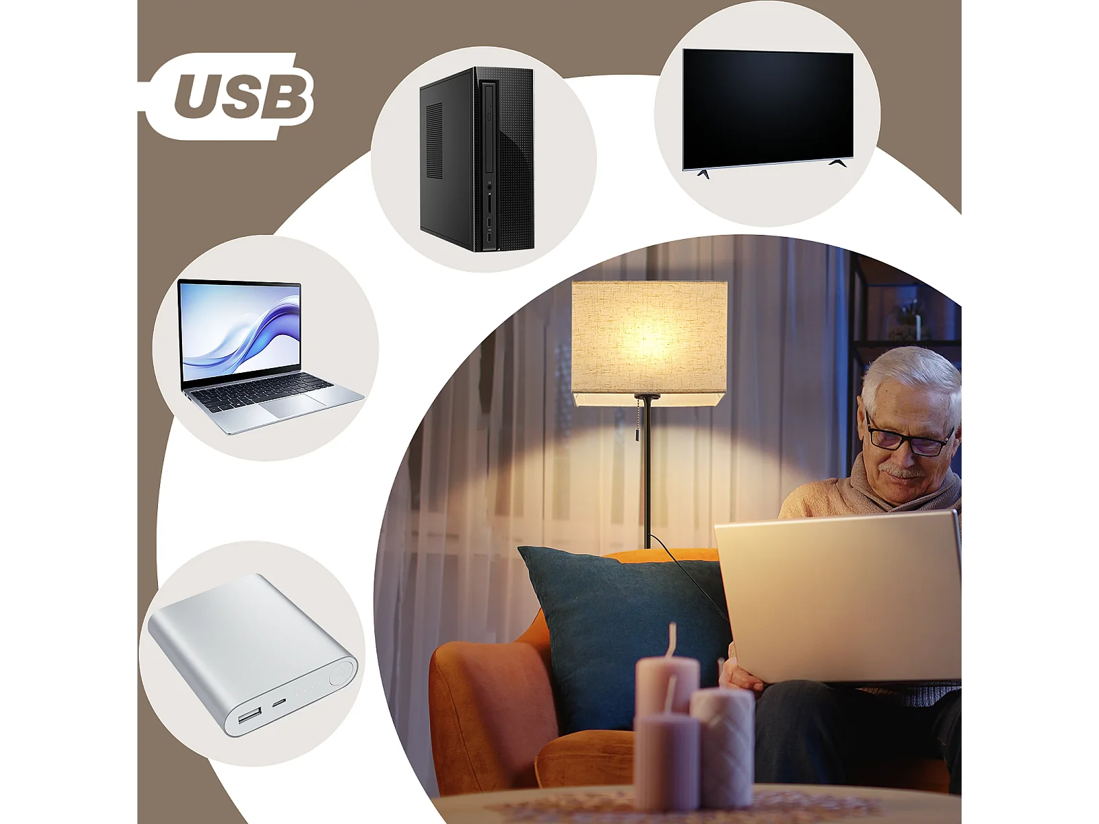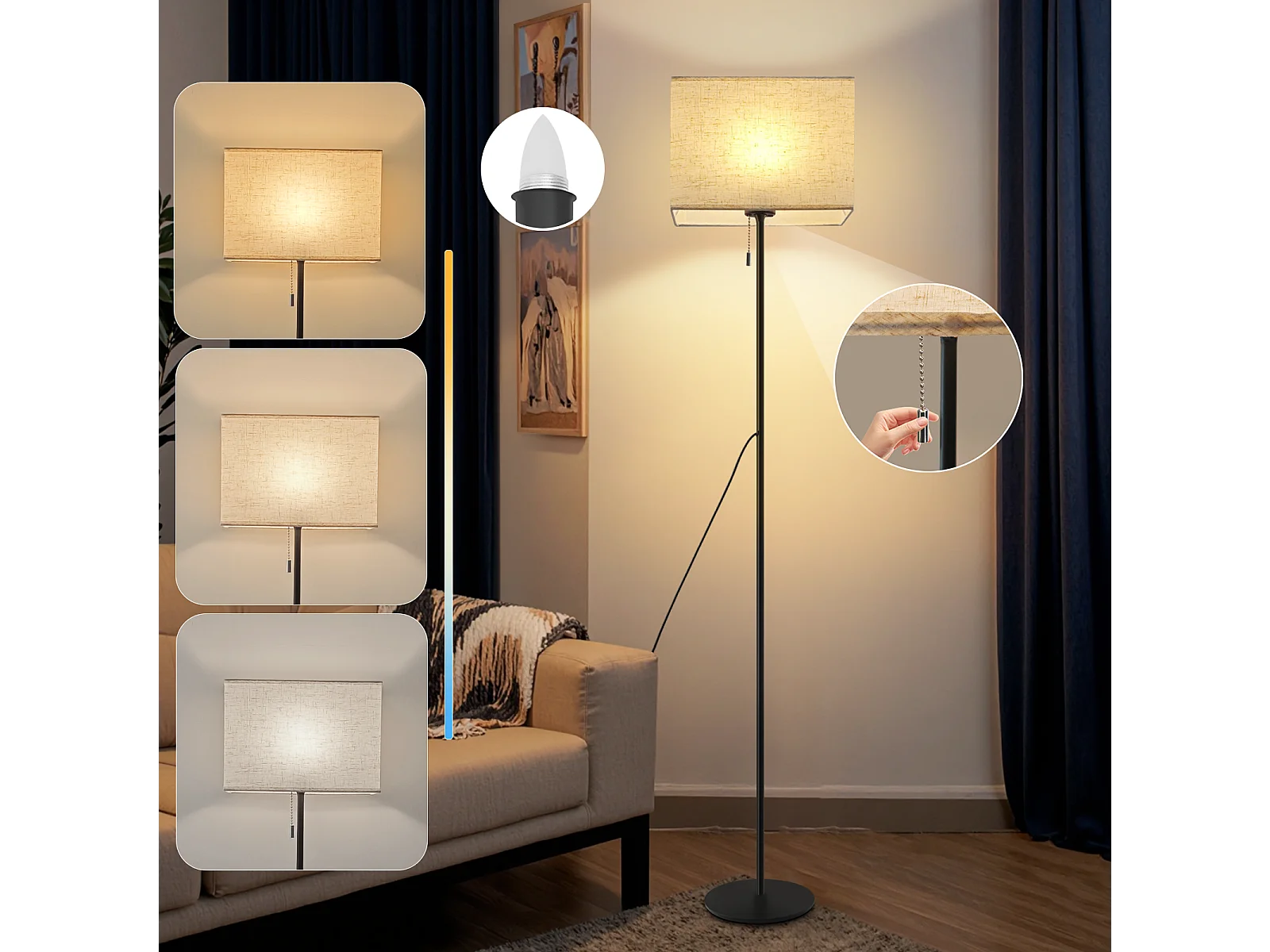NETTLIFE Lampadaire LED à Intensité Variable Rétro Abat-jour En Tissu Pour Salon, Avec Interrupteur à Tirette