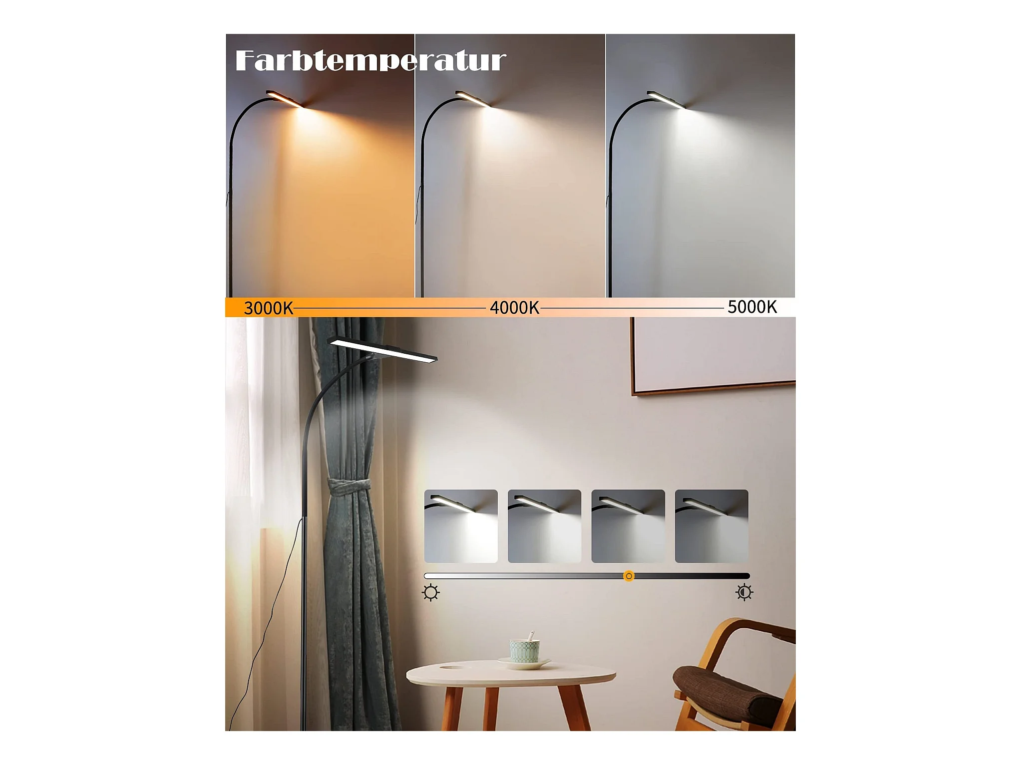 NETTLIFE Lampadaire LED Salon Dimmable Noir Lampadaire 11w 360° Flexible Canapé