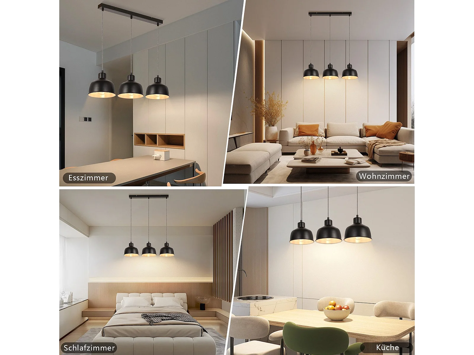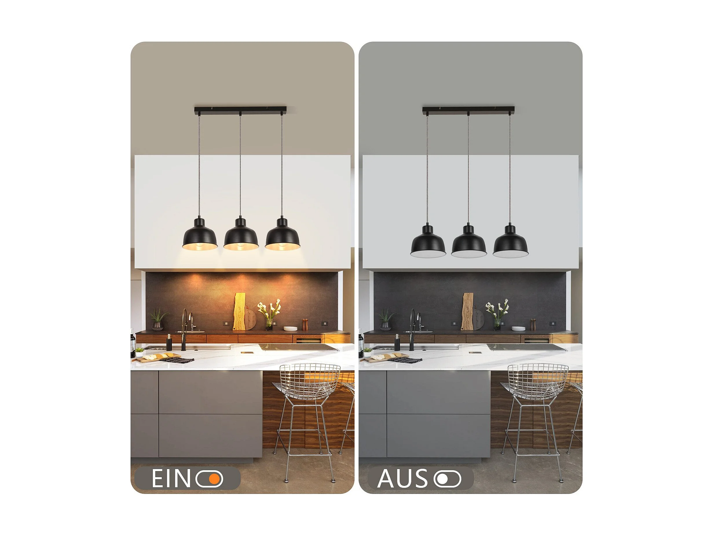 NETTLIFE Lampe à Suspension Vintage 3 Flammes Rétro Industrial Noir Lampe de Table E27