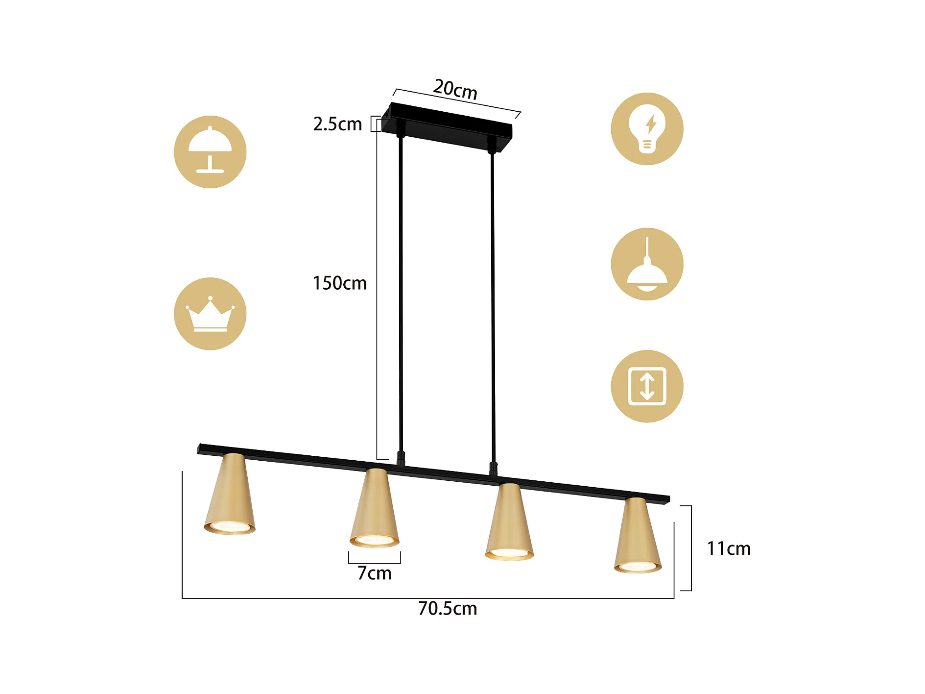 NETTLIFE Lampe suspendue table à manger suspension or: GU10 suspension moderne e 4 flammes métal en noir industriel