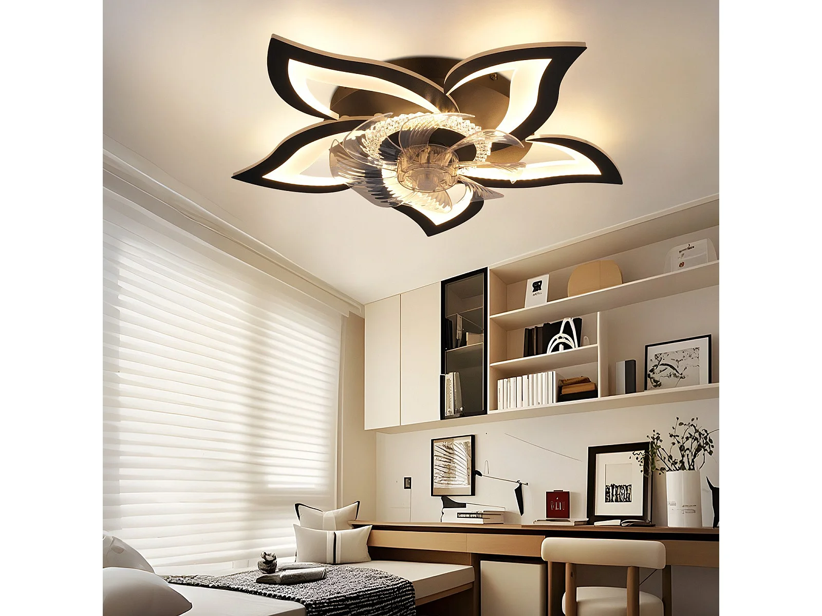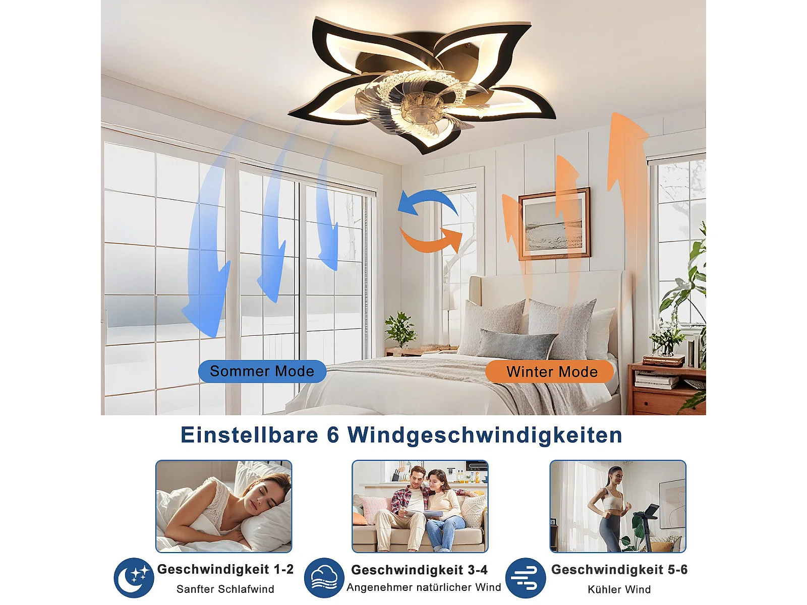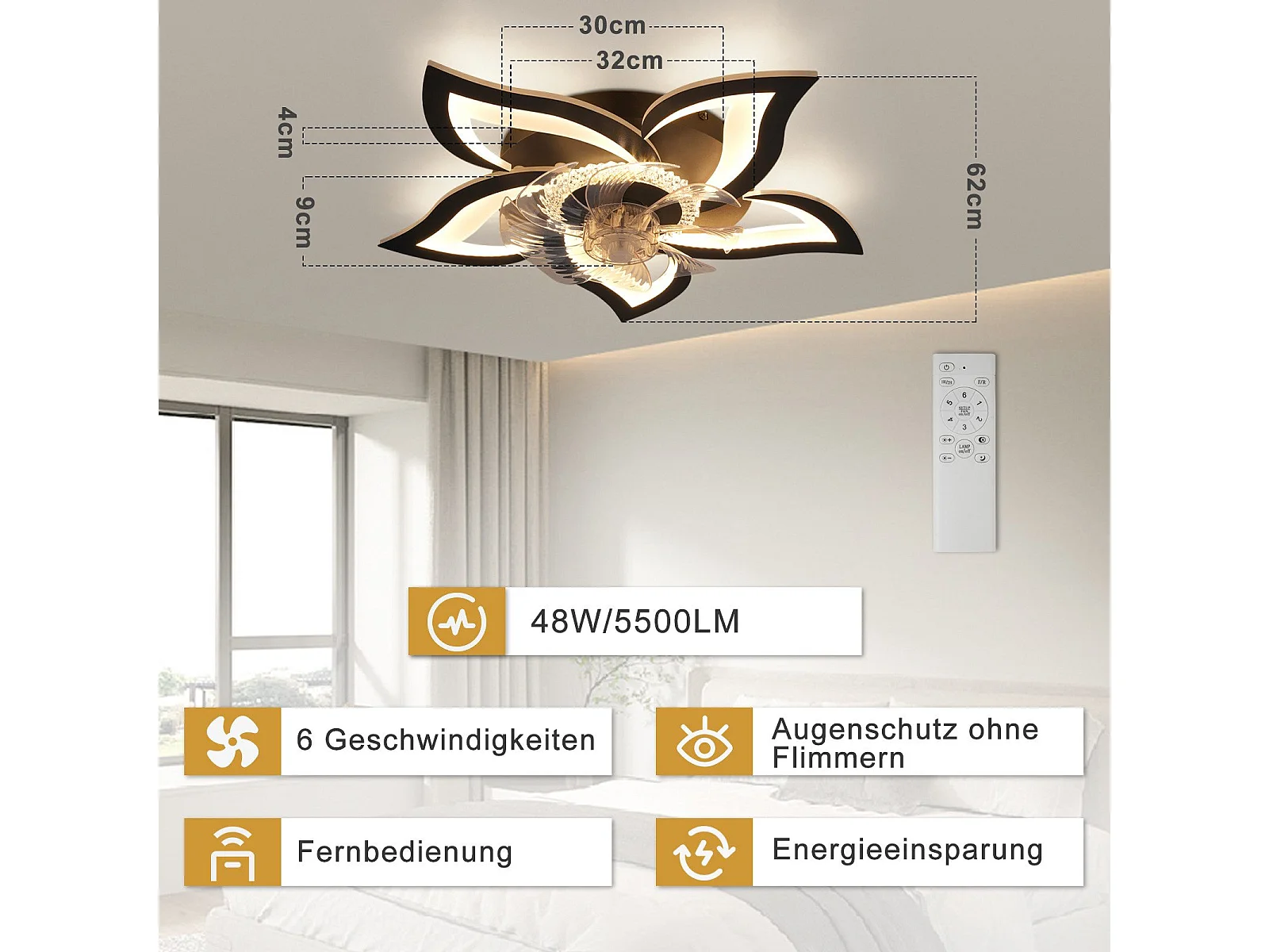 Ventilateur de plafond LED NETTLIFE avec éclairage 48 W Noir Silencieux Télécommande Intensité variable 3 températures de couleur Minuterie 6 vitesses