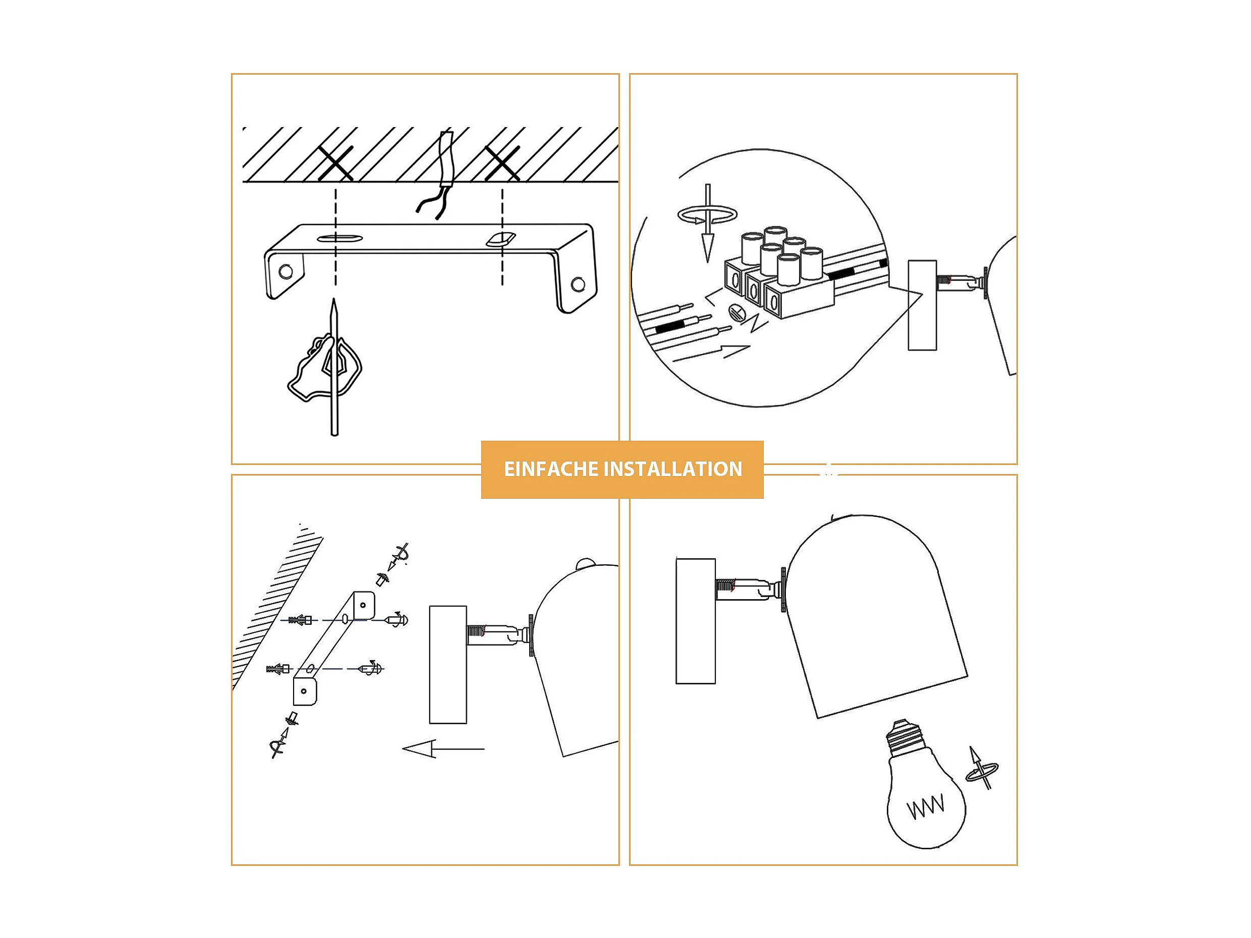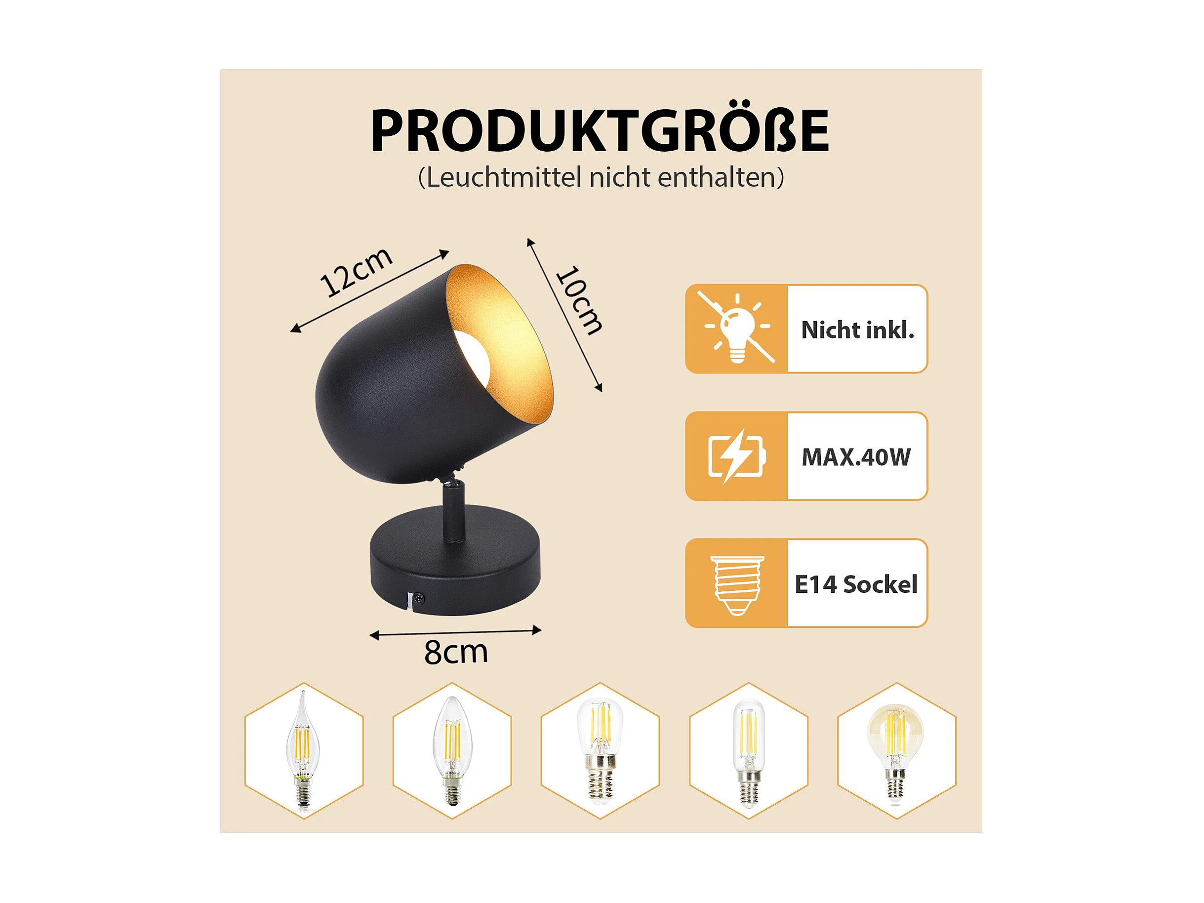 NETTLIFE Plafonnier E14 spot de plafond or noir lampe de couloir industrielle vintage