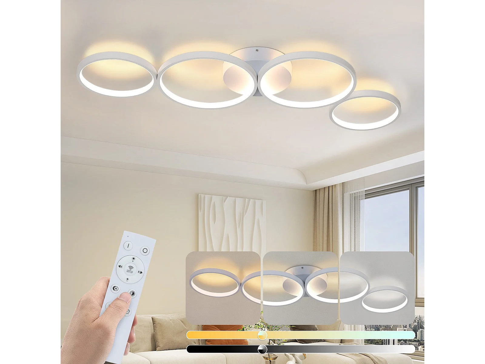 NETTLIFE Plafonnier LED Plafonnier 100cm Dimmable 4 Anneaux Moderne 56w Éclairage Blanc Avec Télécommande
