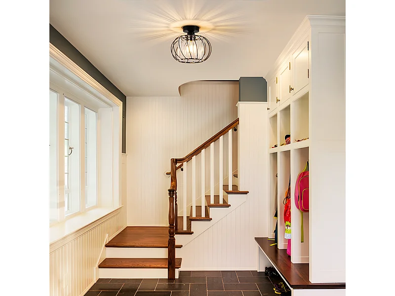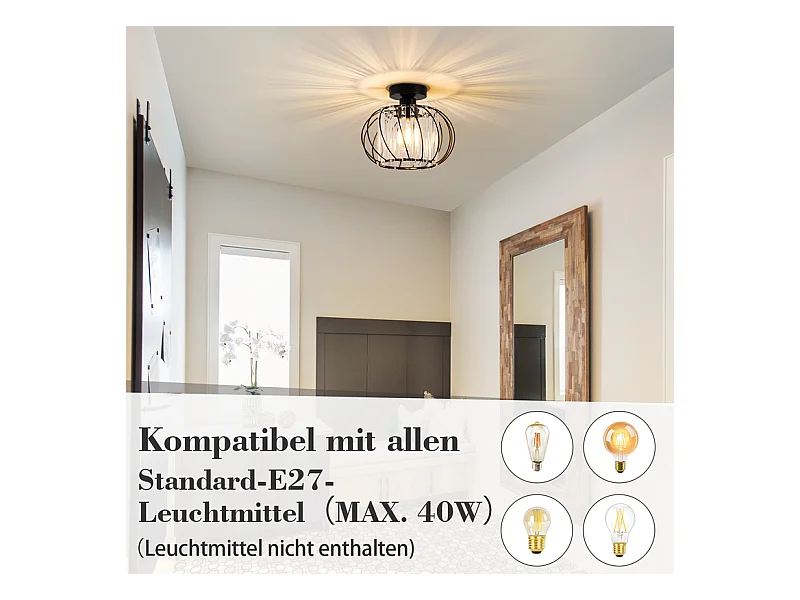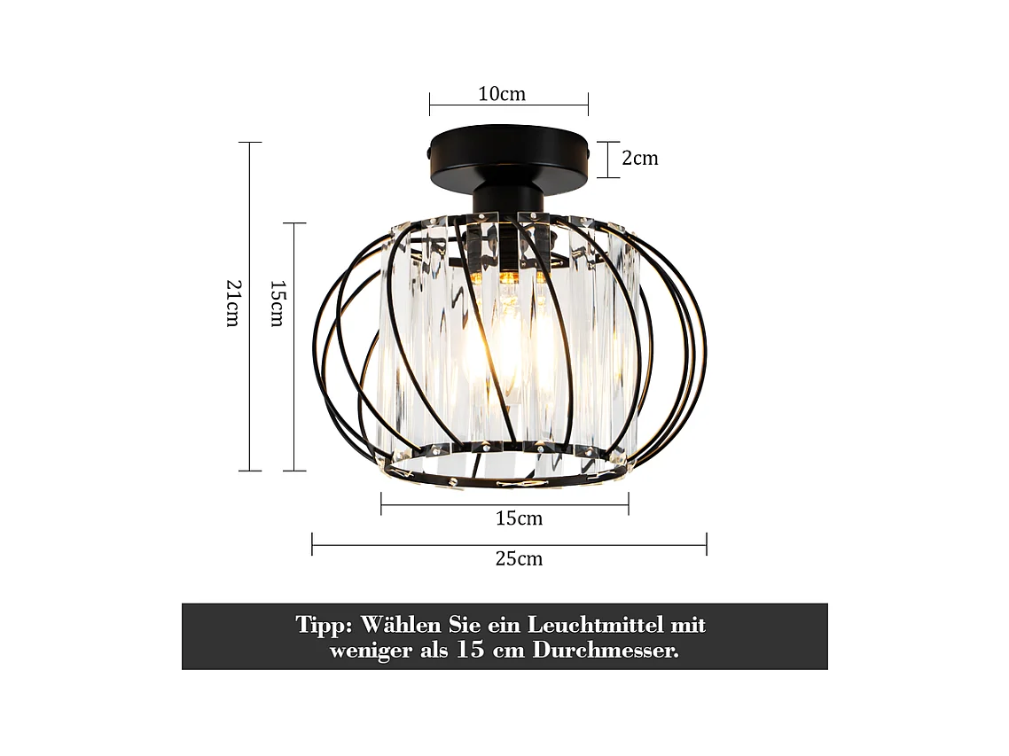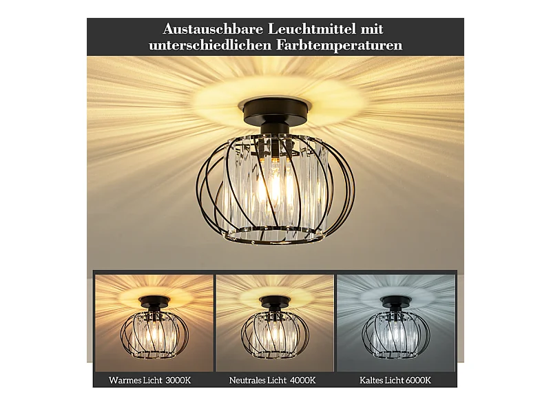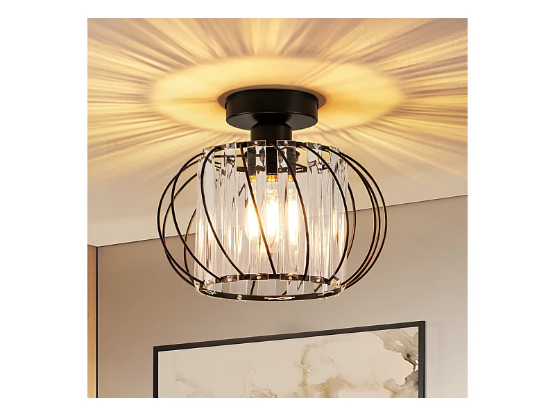 NETTLIFE Plafonnier Plafonnier moderne en cristal : Lampe de couloir noire E27 Lampe de cuisine vintage avec cadre en métal à l'intérieur