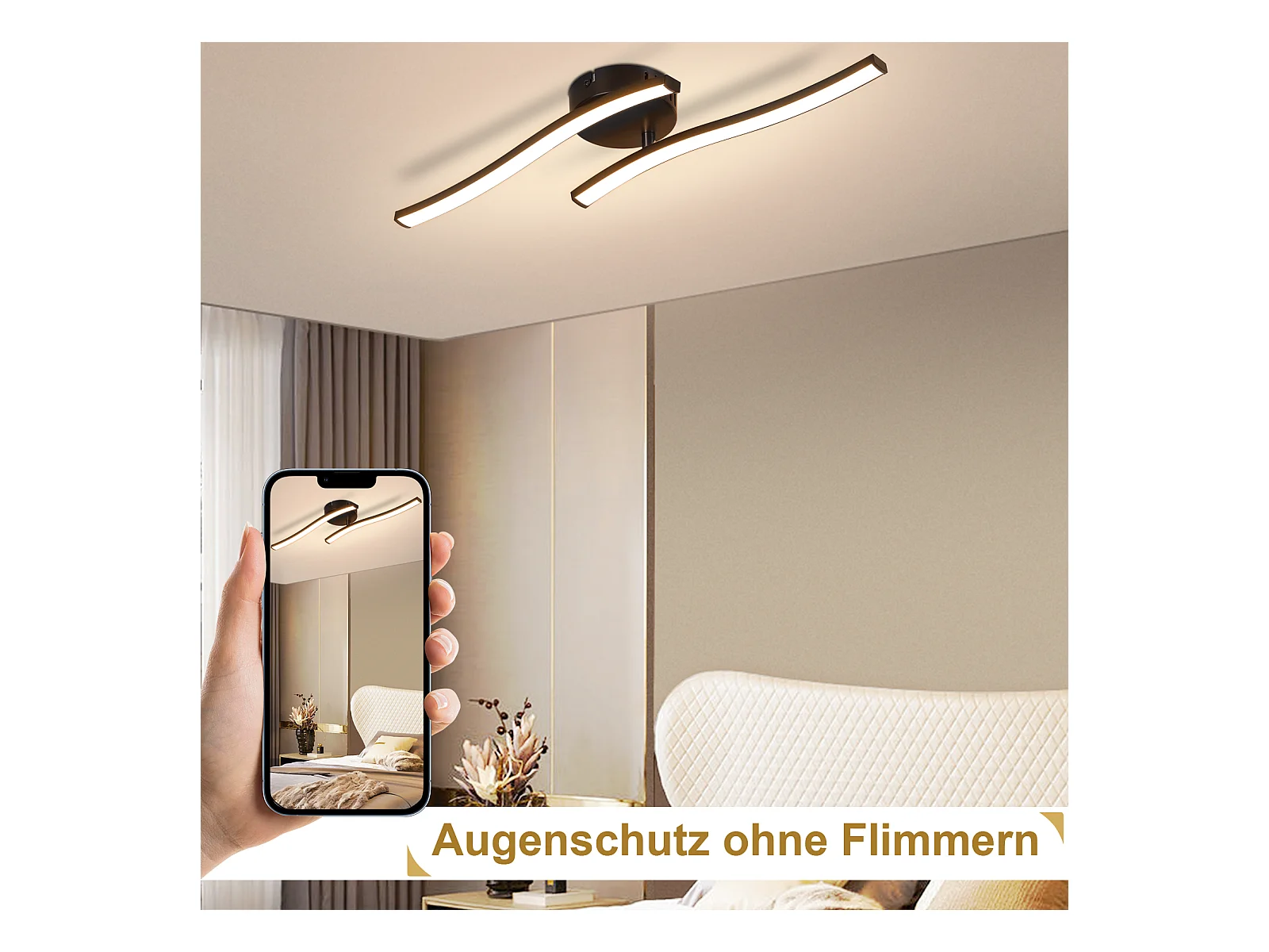 NETTLIFE Plafonnier LED salon plafonnier moderne noir 24W design d'intérieur 3000K blanc chaud