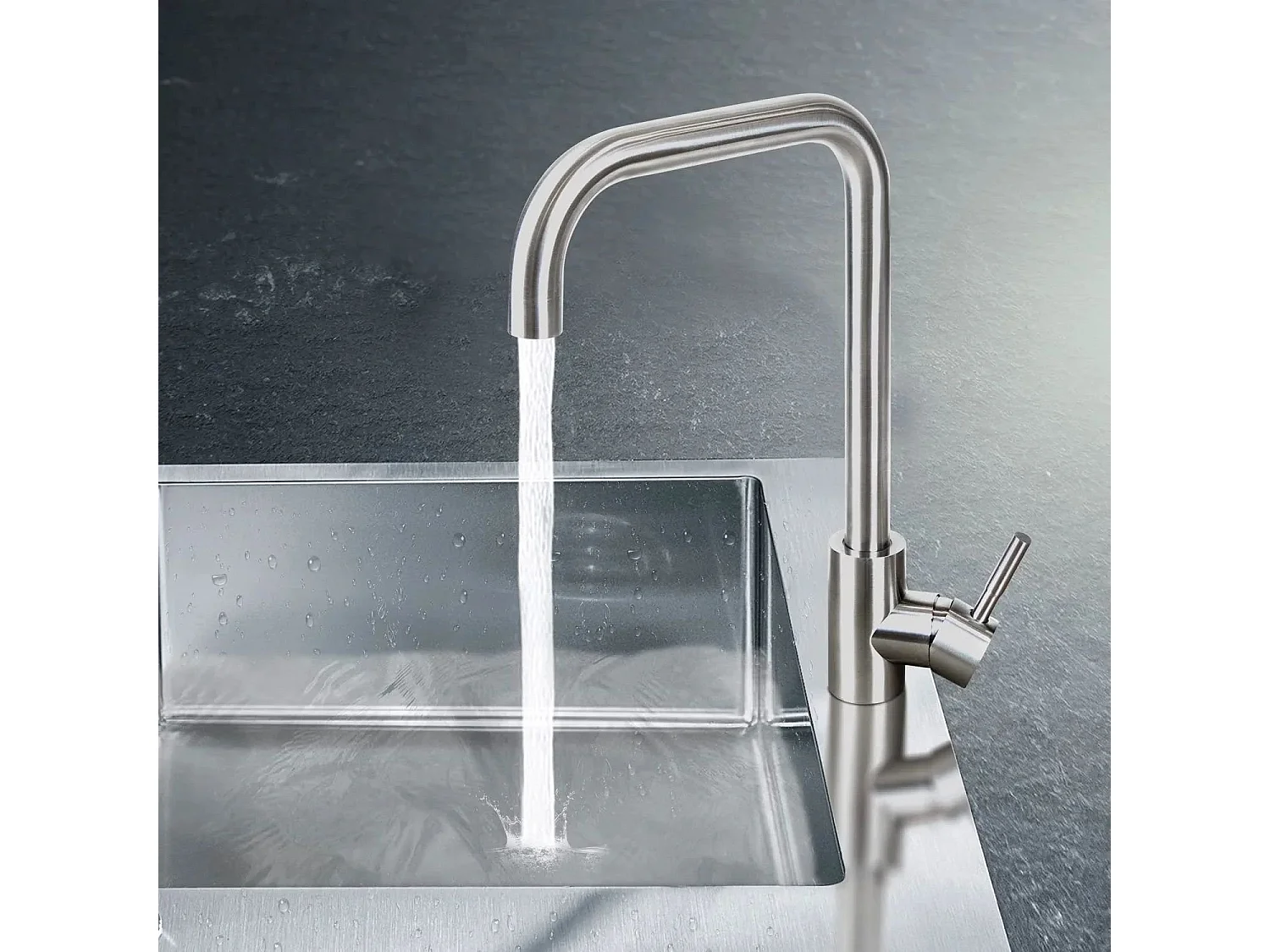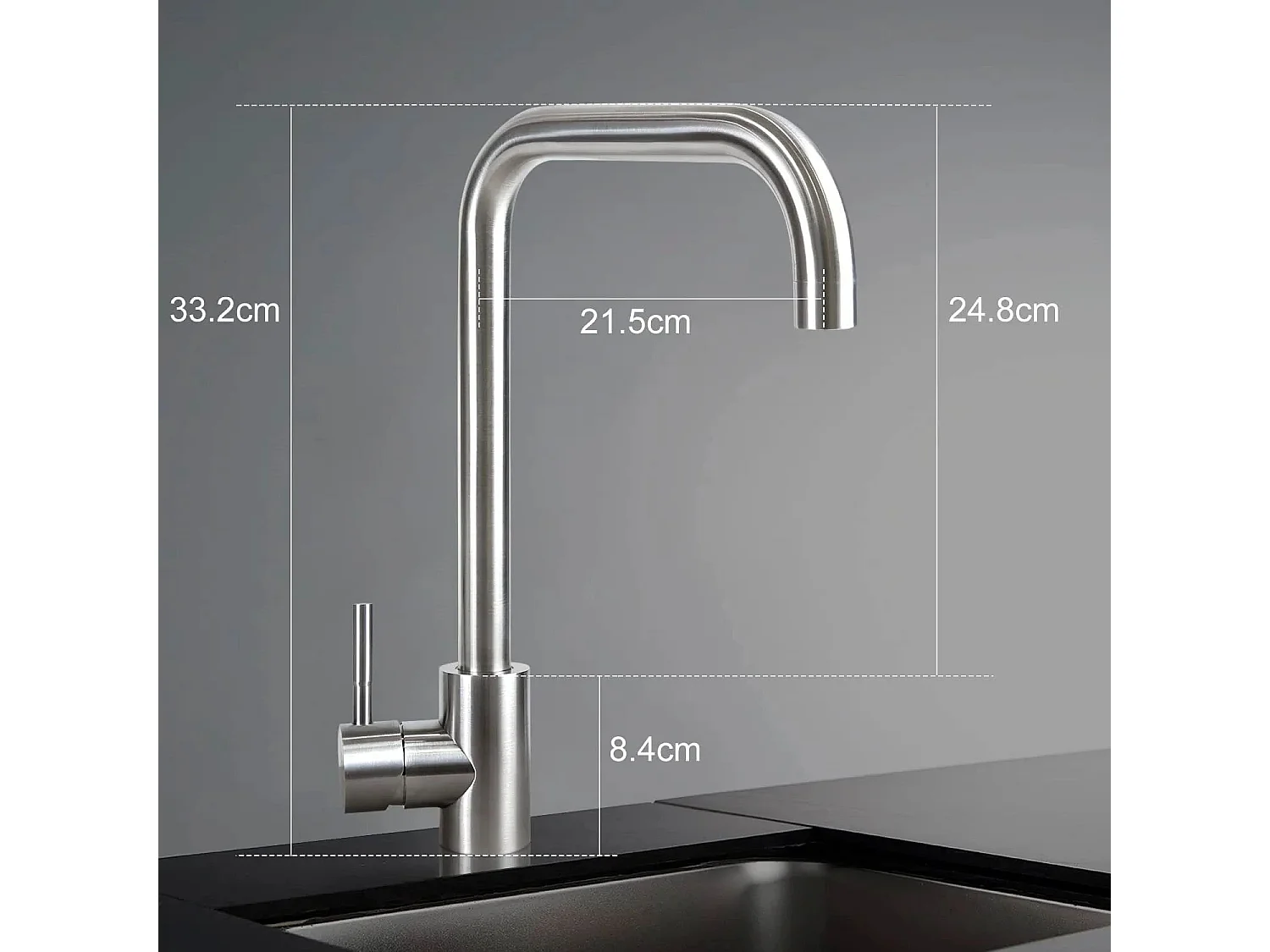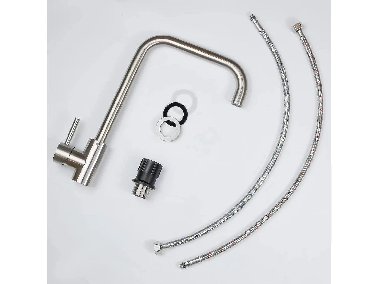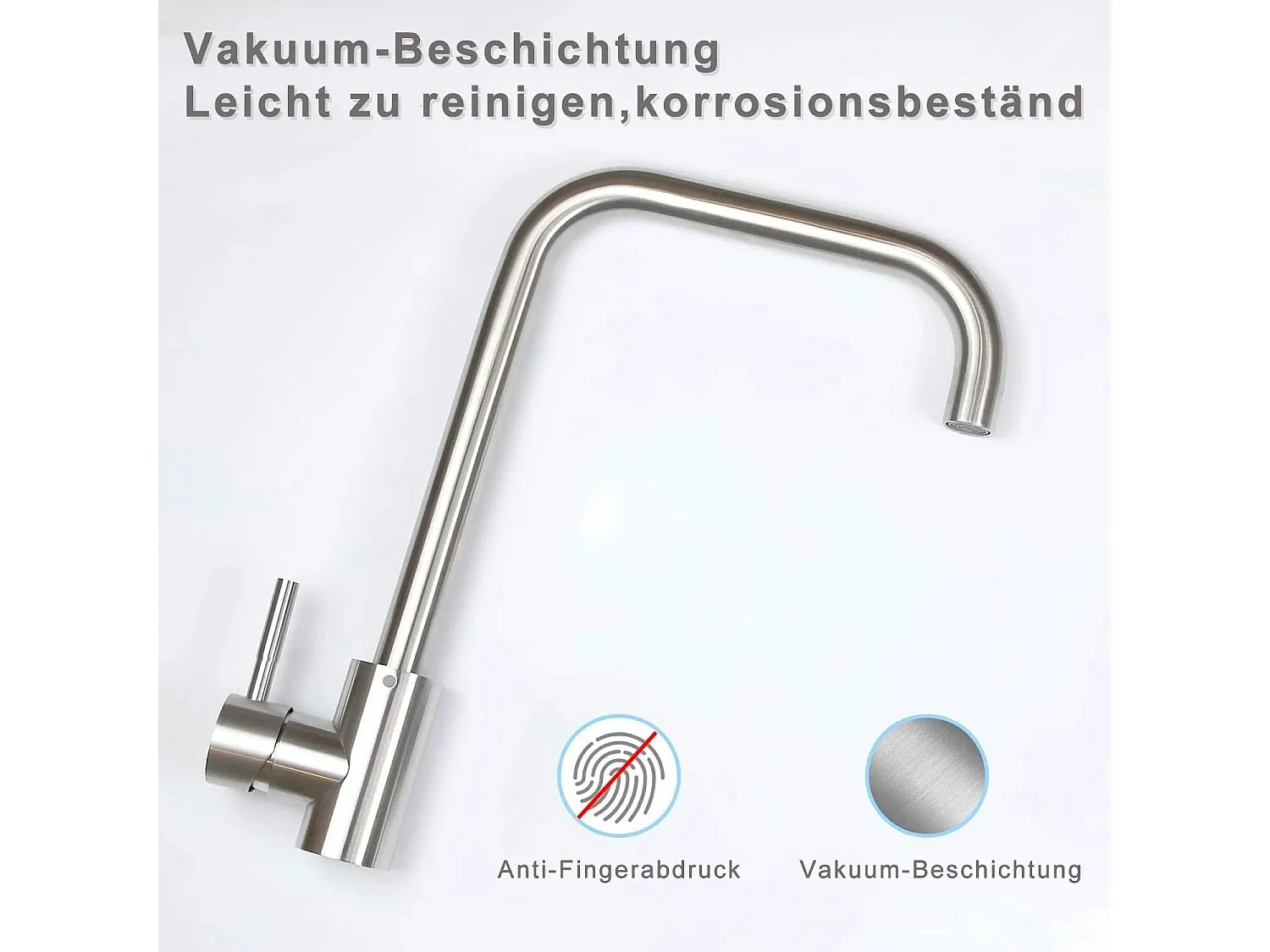NETTLIFE Robinet de Cuisine mitigeur en Acier Inoxydable avec Poignée Unique, à Haute Pression, Robinet de Cuisine Pivotant à 360 °, Nickel