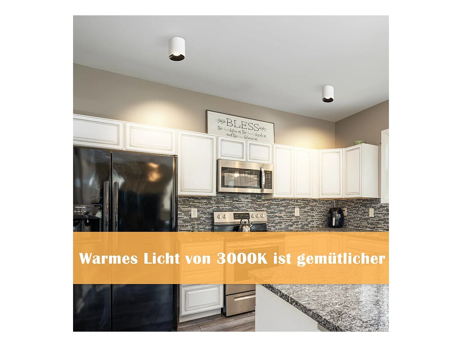 NETTLIFE Spot 3000 K 7 W LED en saillie, blanc, rond, moderne, blanc chaud, spot de plafond plat, plafonnier