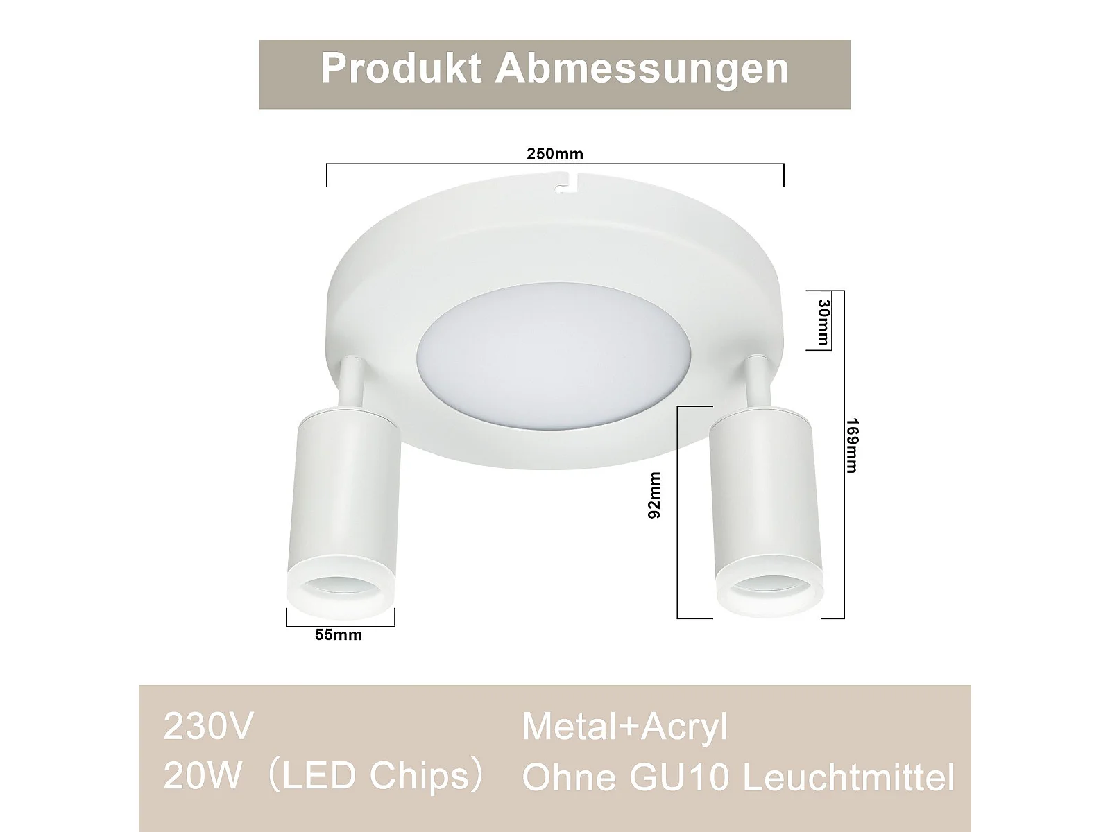 NETTLIFE Spot de plafond 2 ampoules GU10 20W chambre 3000k Pivotant Pivotant en métal à 350°