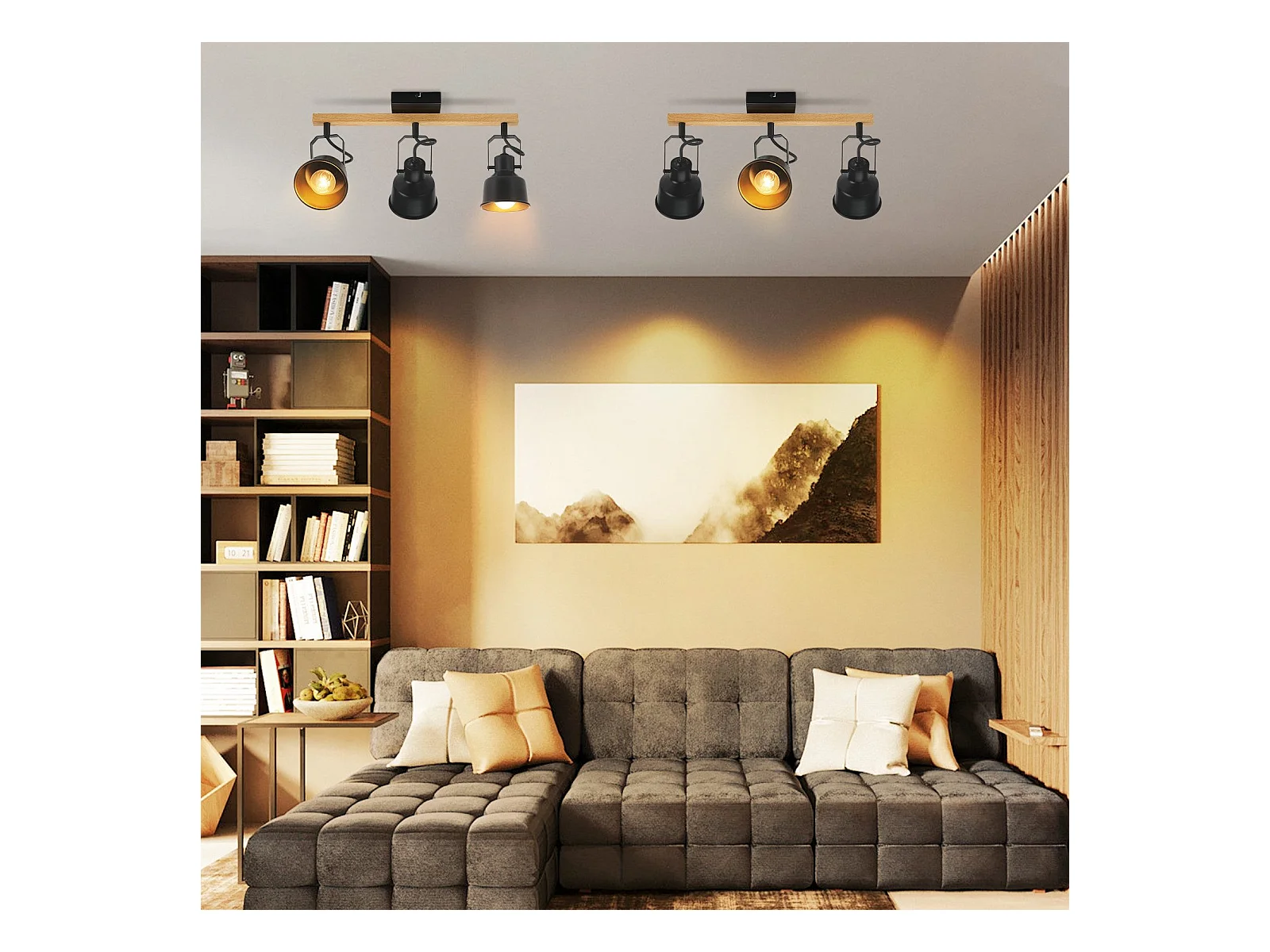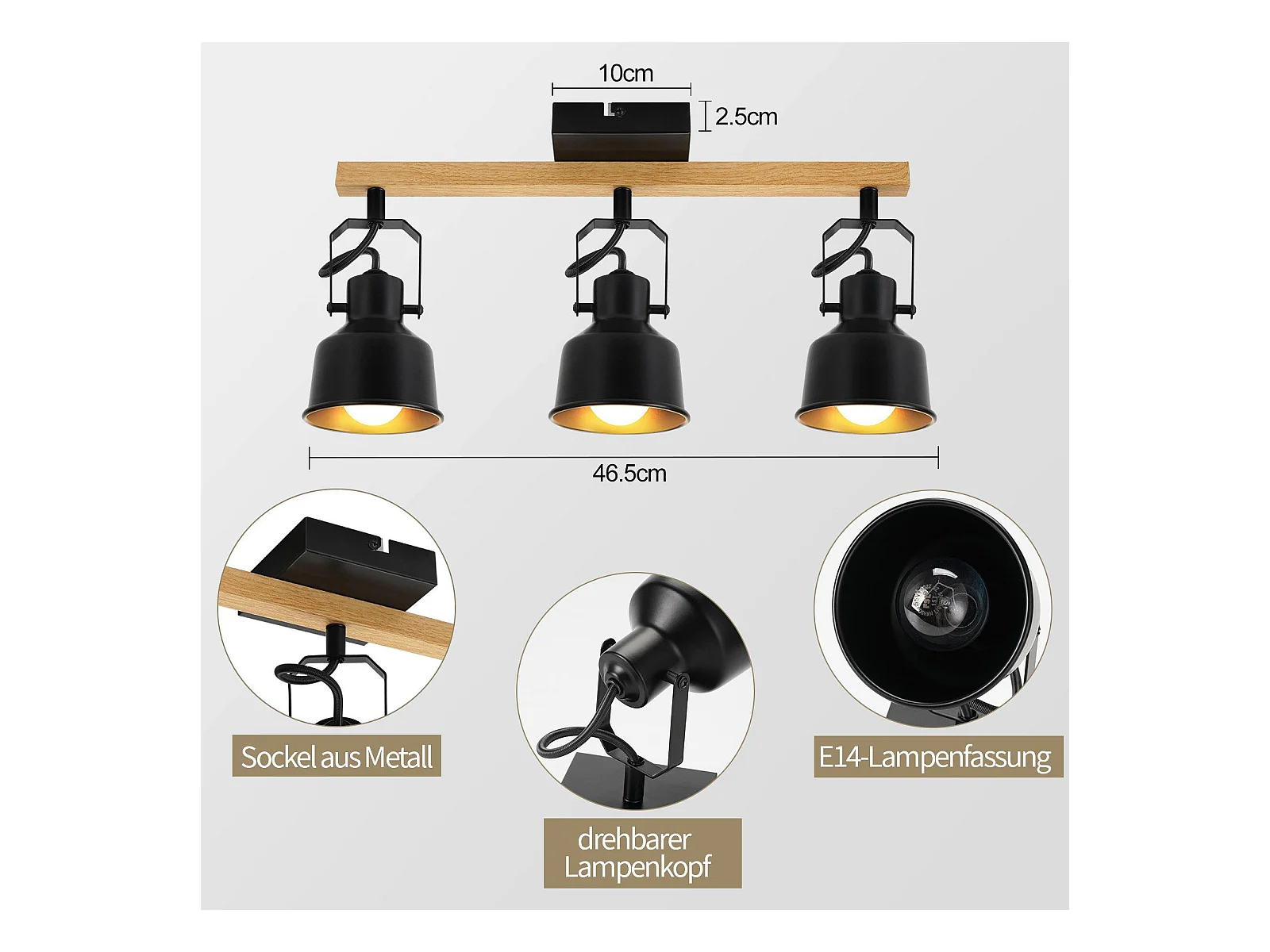 NETTLIFE Spot de Plafond 3 Flammes Orientable à 350° Vintage E14 de conception de haute qualité en bois veiné