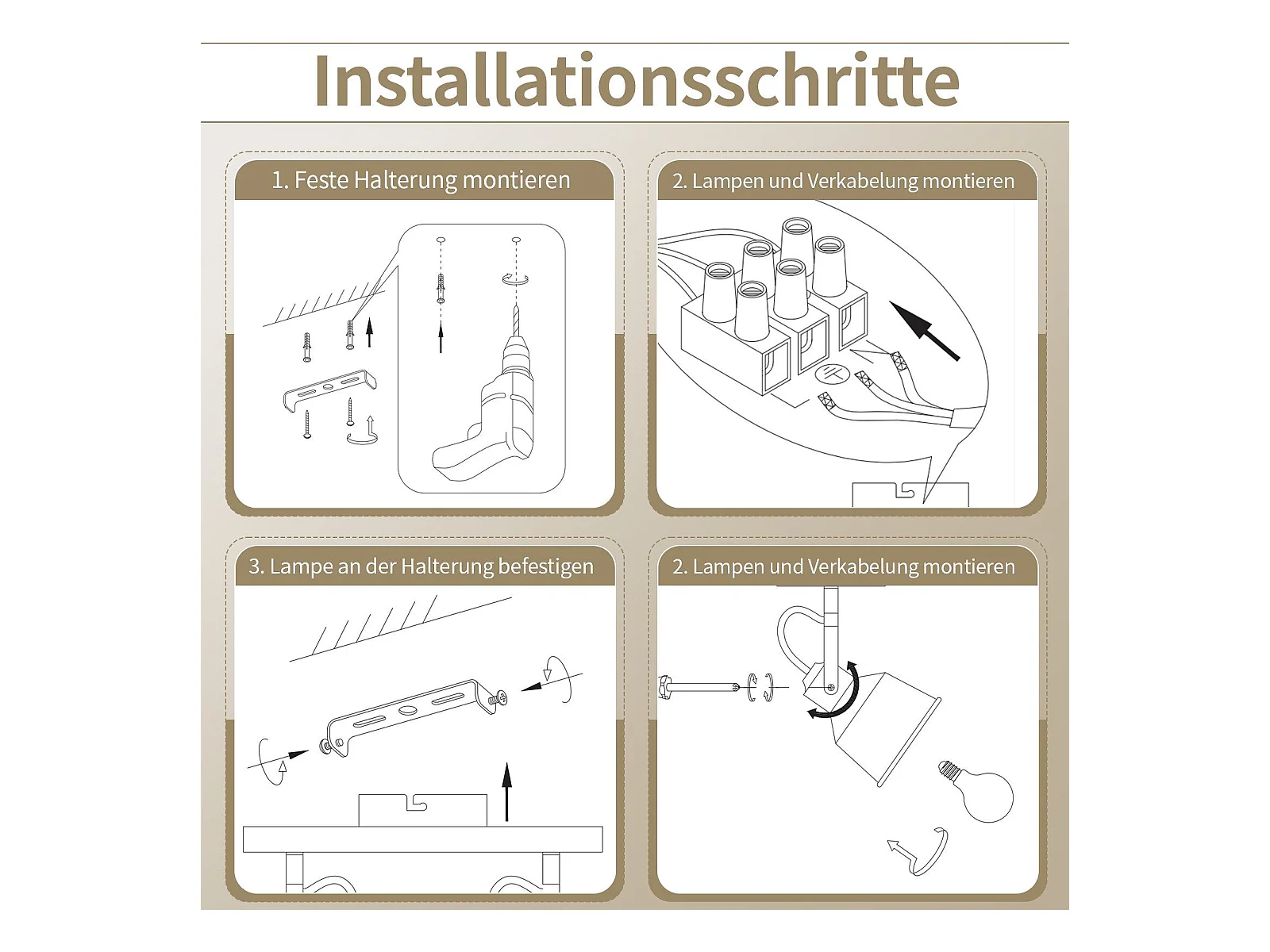 NETTLIFE Spot de plafond 3 flammes E14 plafonnier vintage orientable à 350° pour couloir salon