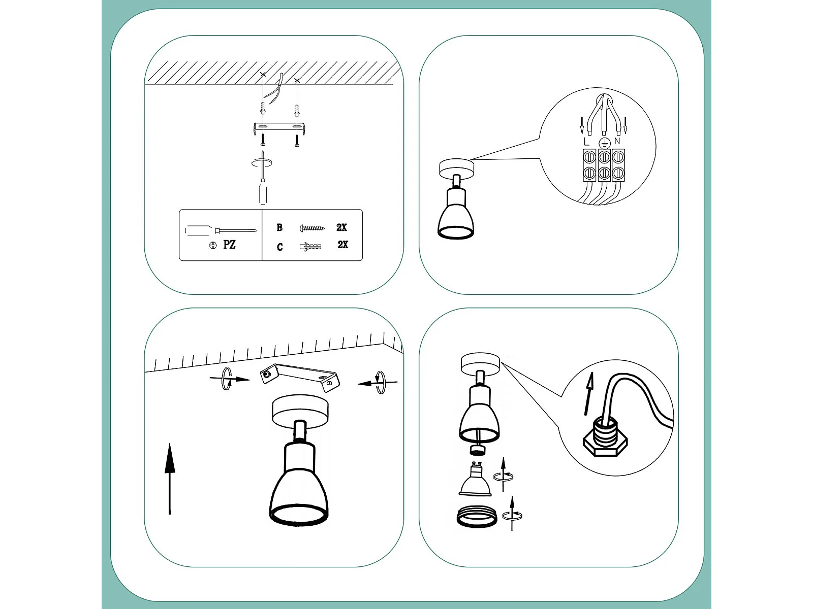 NETTLIFE Spot de plafond plafonnier moderne 1 ampoule orientables GU10