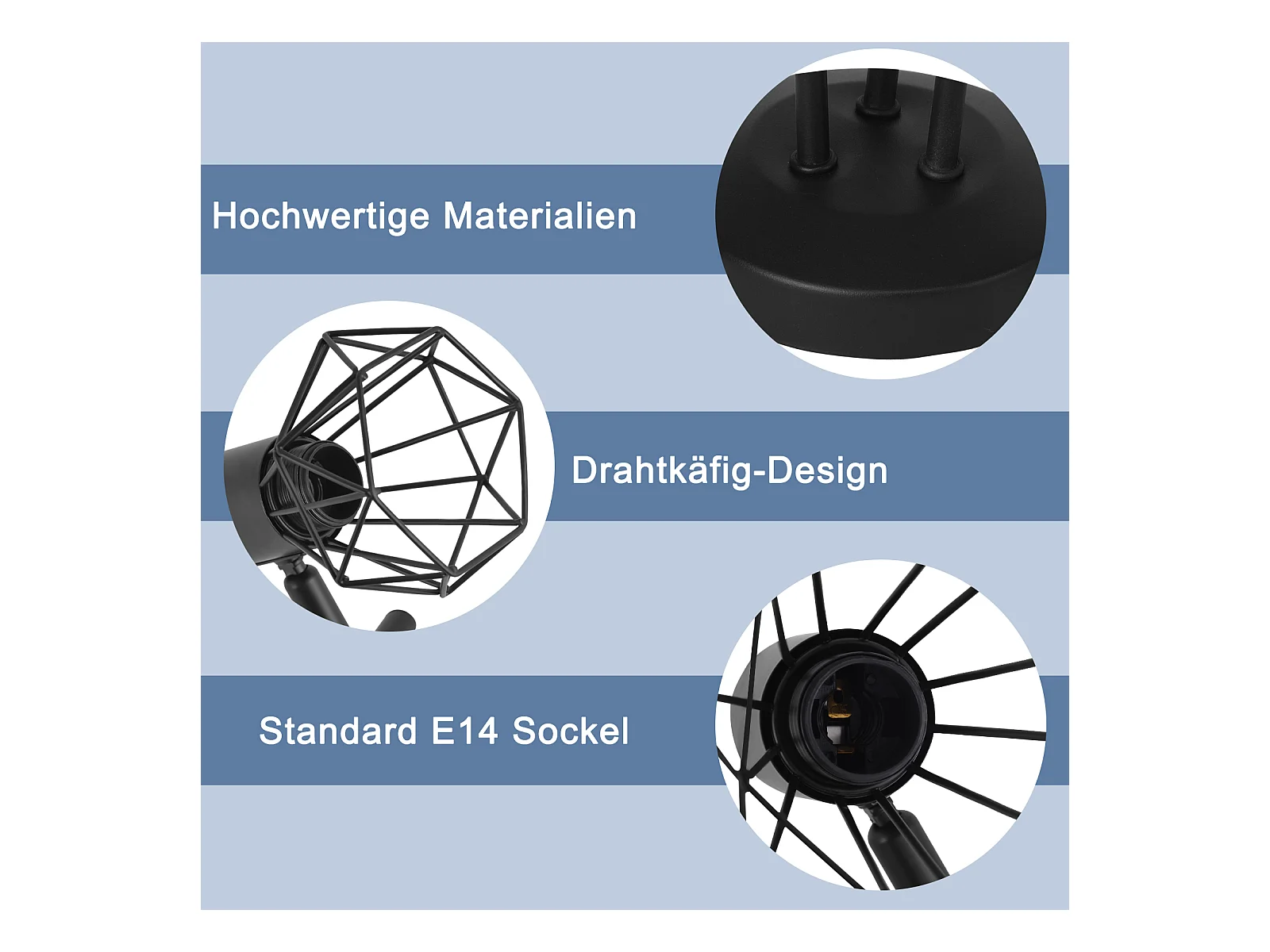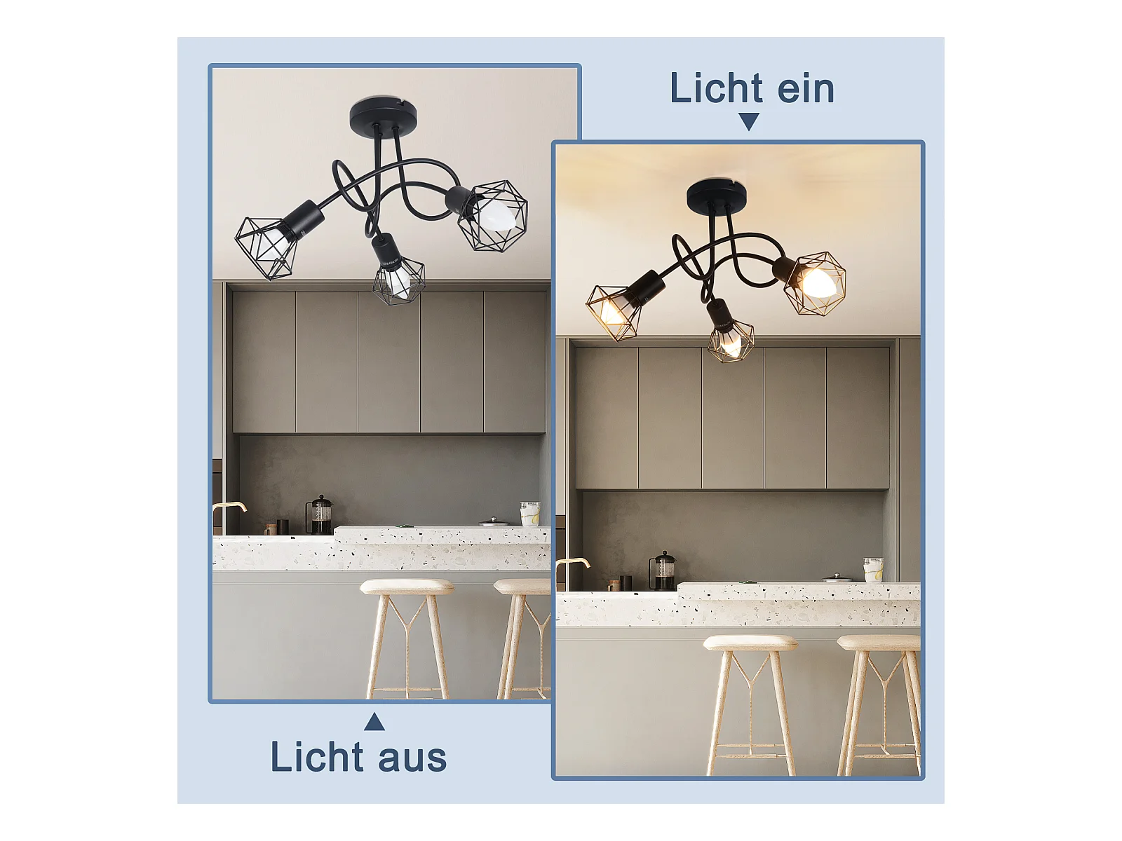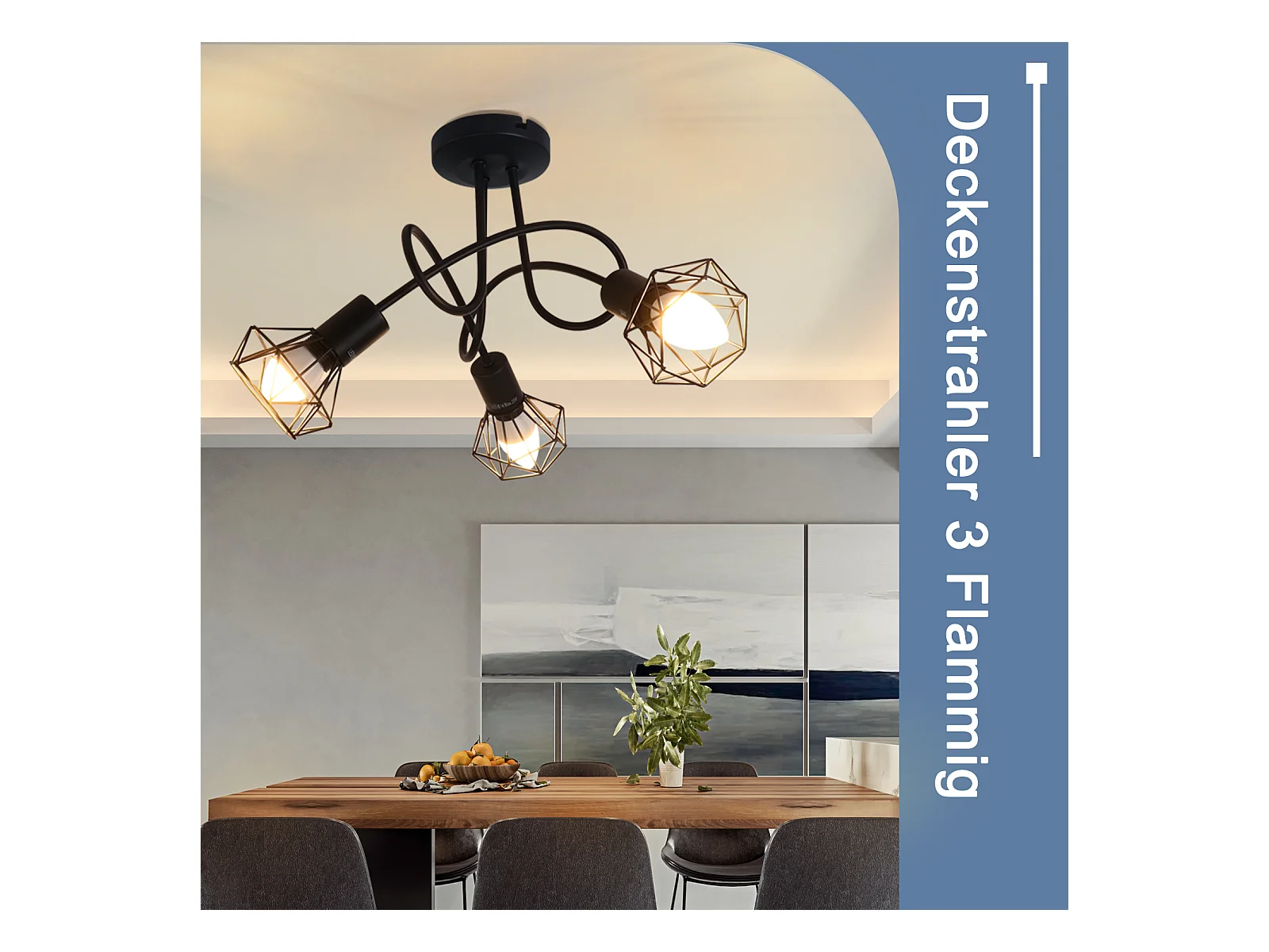 NETTLIFE Spot de plafond LED 3 ampoules noir vintage orientable 350° spot industriel E14