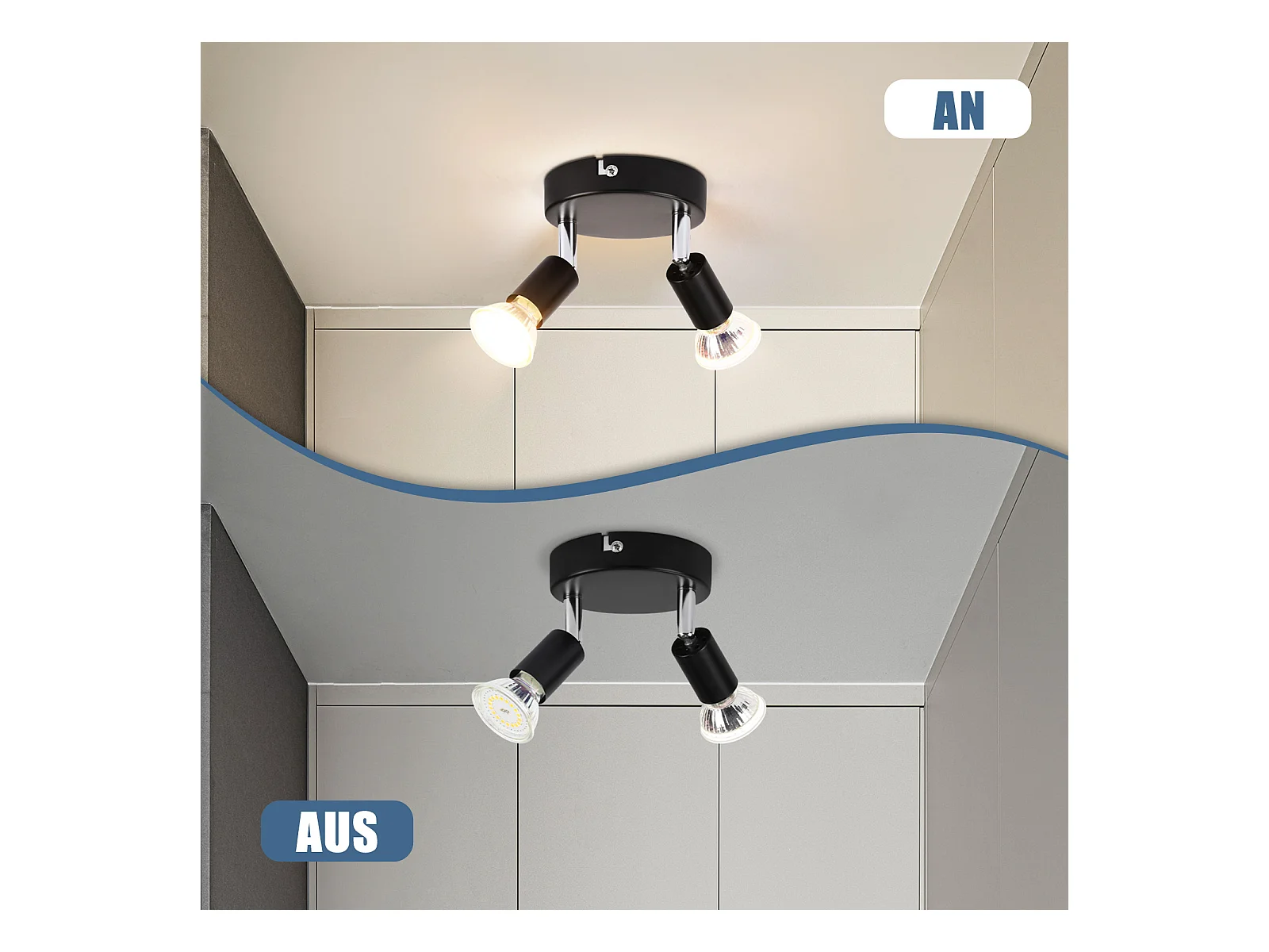 NETTLIFE Spot de plafond salon 2 ampoules noir GU10 plafonnier pivotant spot intérieur moderne pour chambre cuisine