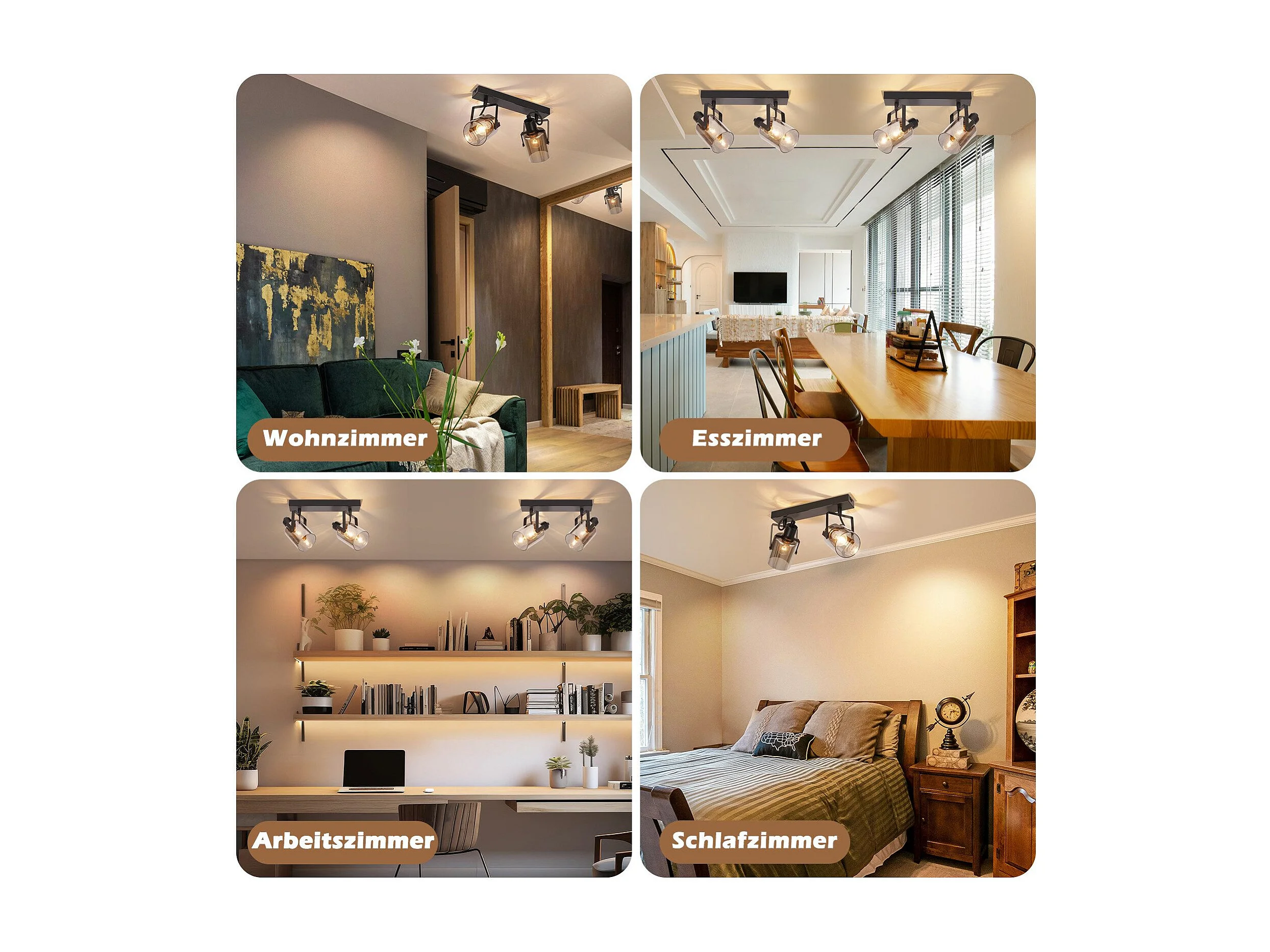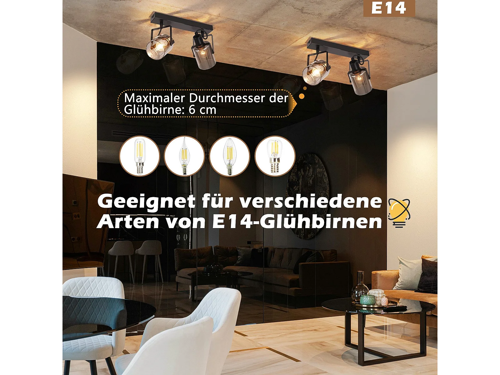 NETTLIFE Spot de plafond noirs 4 ampoules Plafonnier orientable 350° industriel vintage E14
