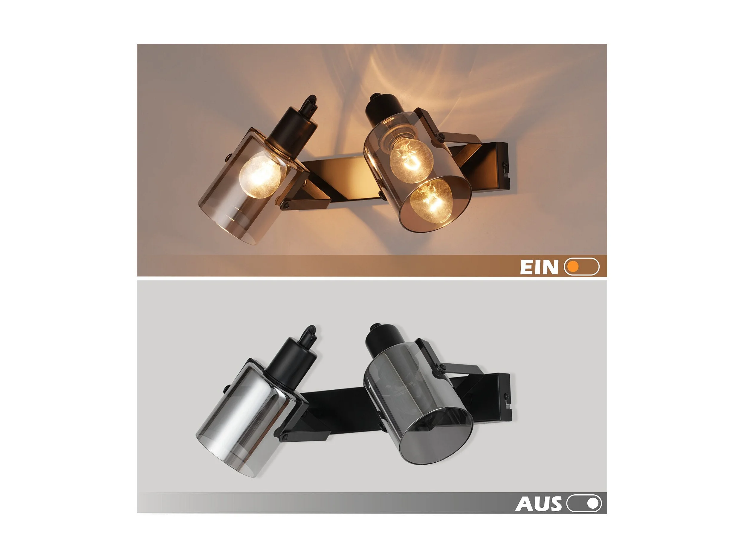 NETTLIFE Spot de plafond plafonnier vintage noir 2 ampoules plafonnier en verre E14 rétro