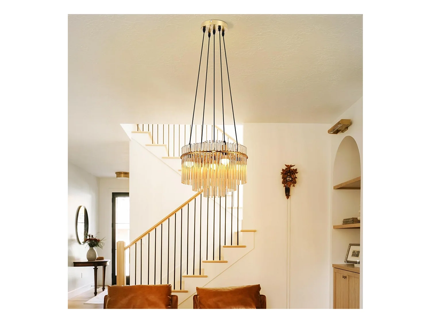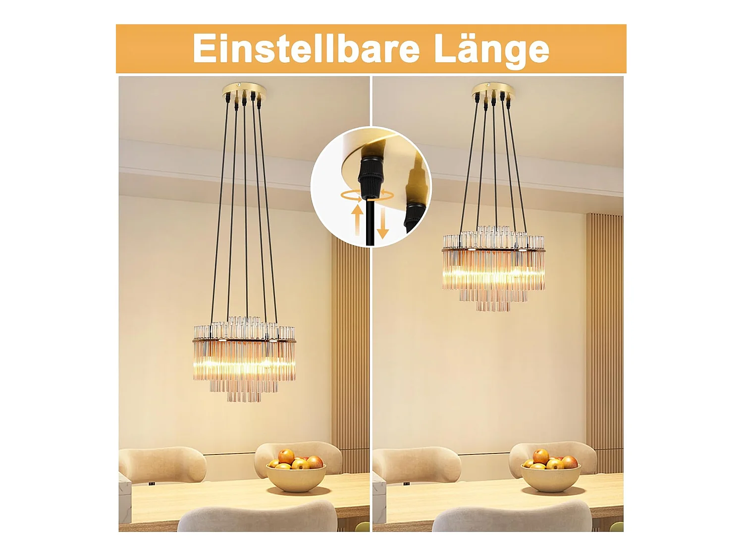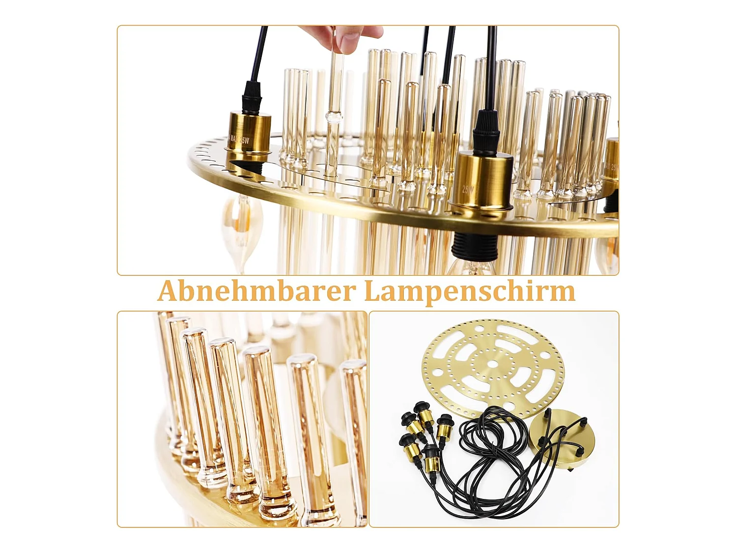 Nettlife Suspension Luminaire Dorée Moderne, Lampe Pendante à 5 Flammes en Verre avec Douille E14, Ronde, Ø 40 cm, pour Cuisine (sans ampoules).