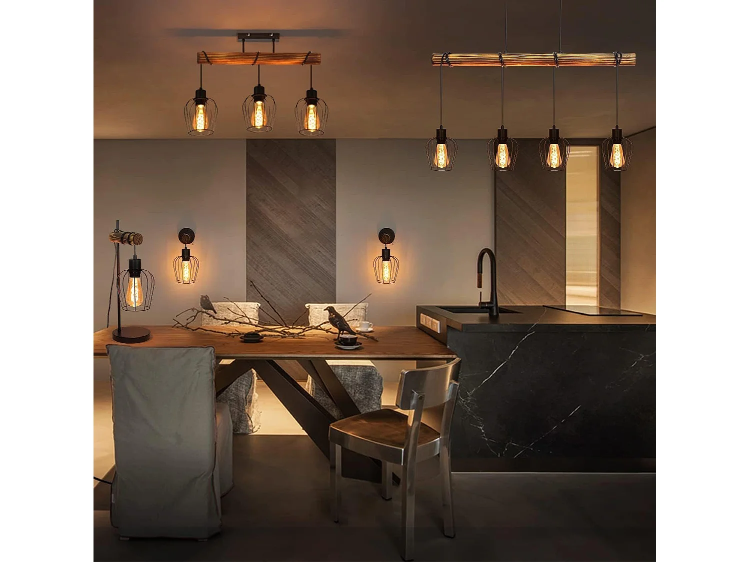 NETTLIFE Suspension rétro lampe à suspension vintage en bois industriel noir E27