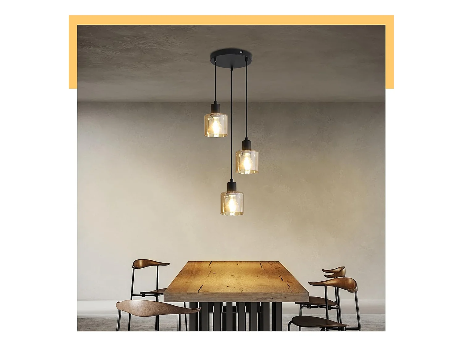 NETTLIFE Suspension Table à Manger Lampe Suspendue Vintage 3 Ampoules Lampe de Table à Manger Suspendue E27 Métal Noir Rétro Industriel