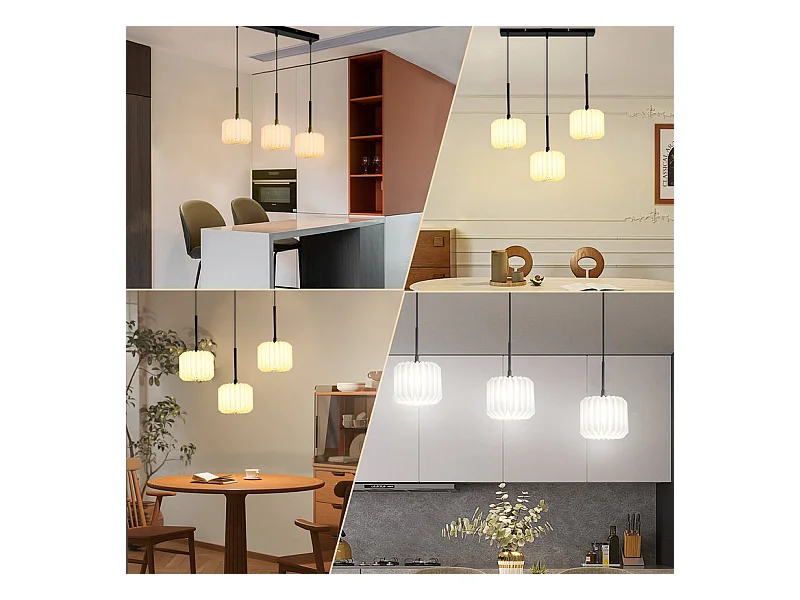 NETTLIFE Suspension table à manger lampe suspendue vintage - lampe suspendue salon salle à manger lampe 3 flammes blanc