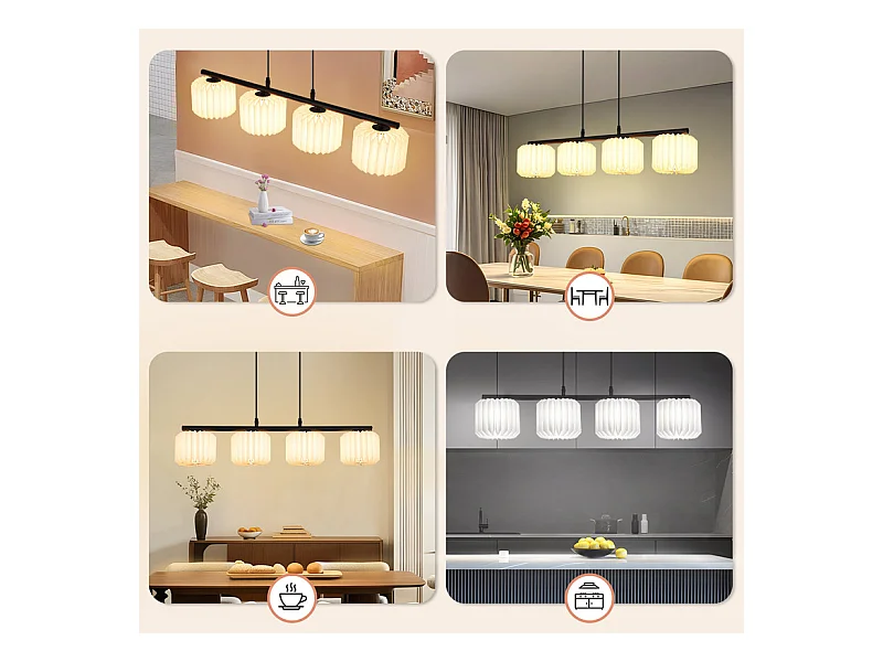 NETTLIFE Suspension table à manger lampe suspendue vintage - lampe suspendue salon salle à manger lampe 4 flammes blanc