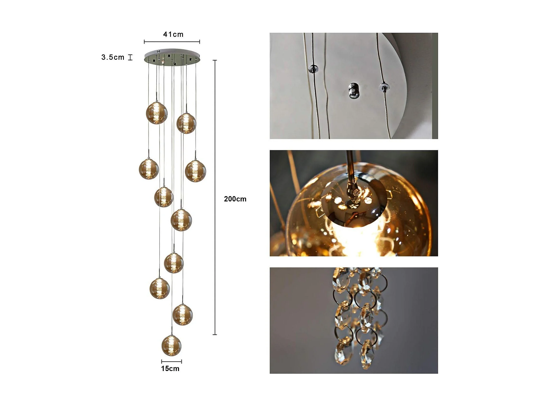 NETTLIFE Suspension table de salle à manger Suspension réglable en hauteur Lustre Suspension à 10 flammes en verre