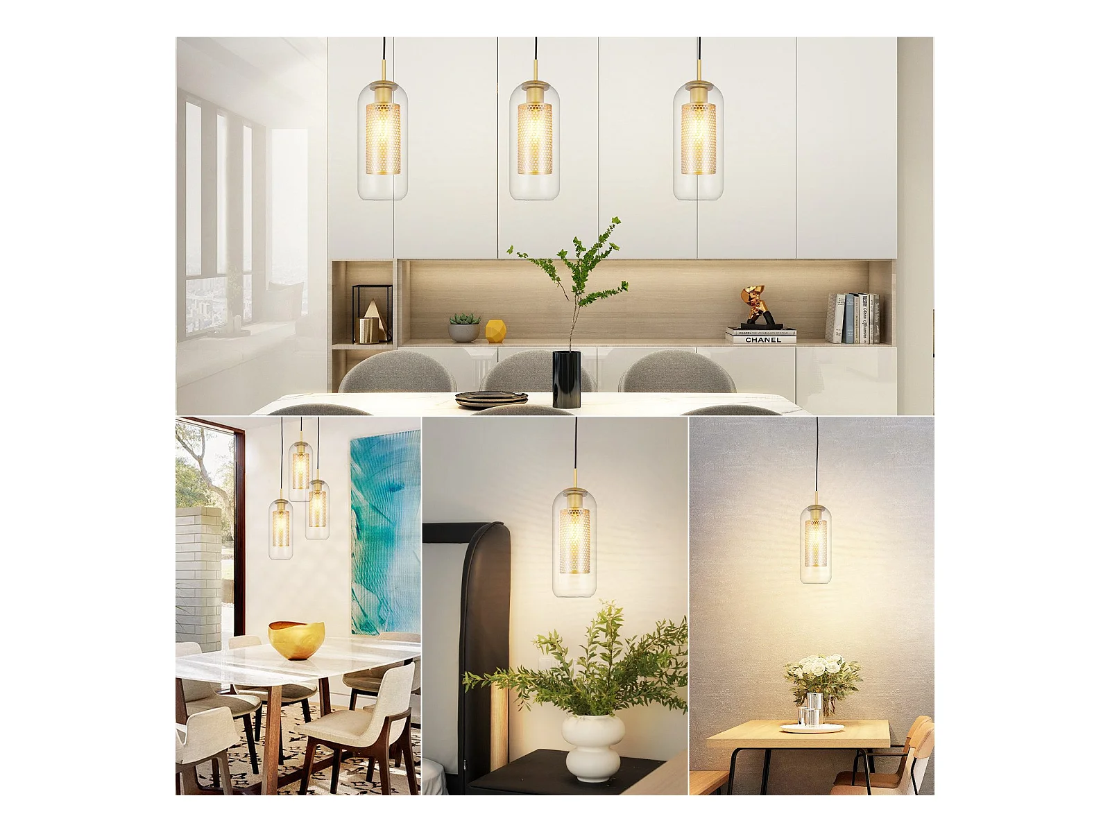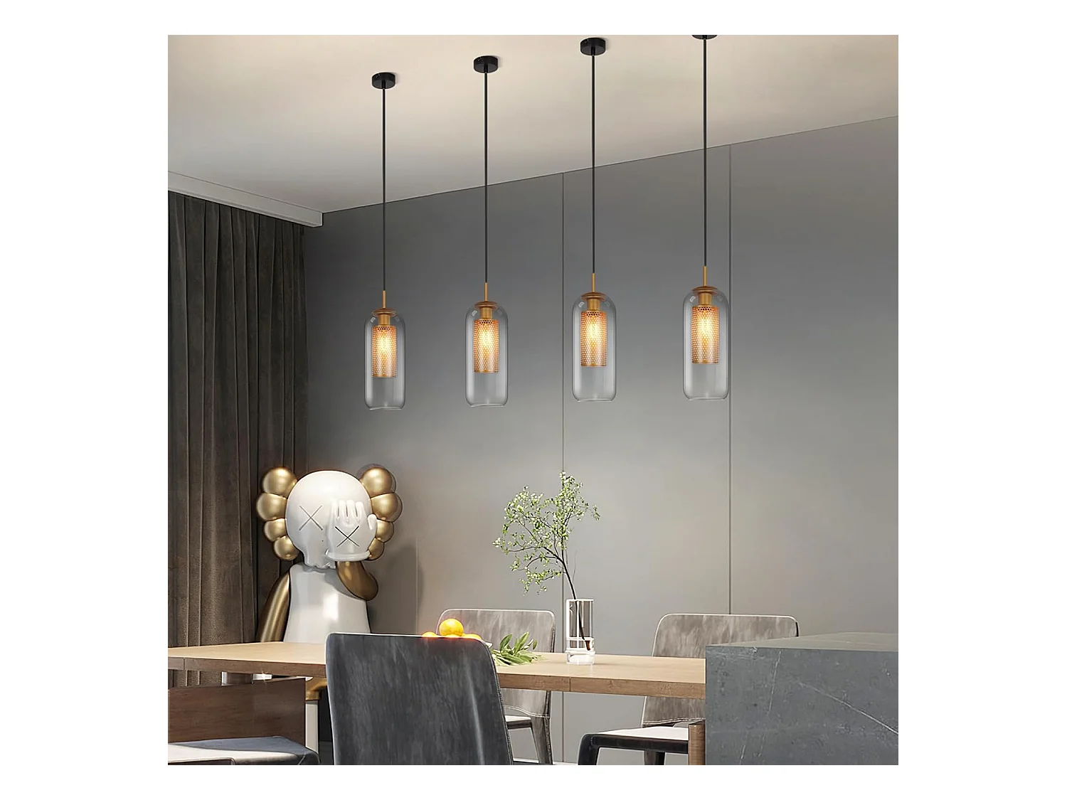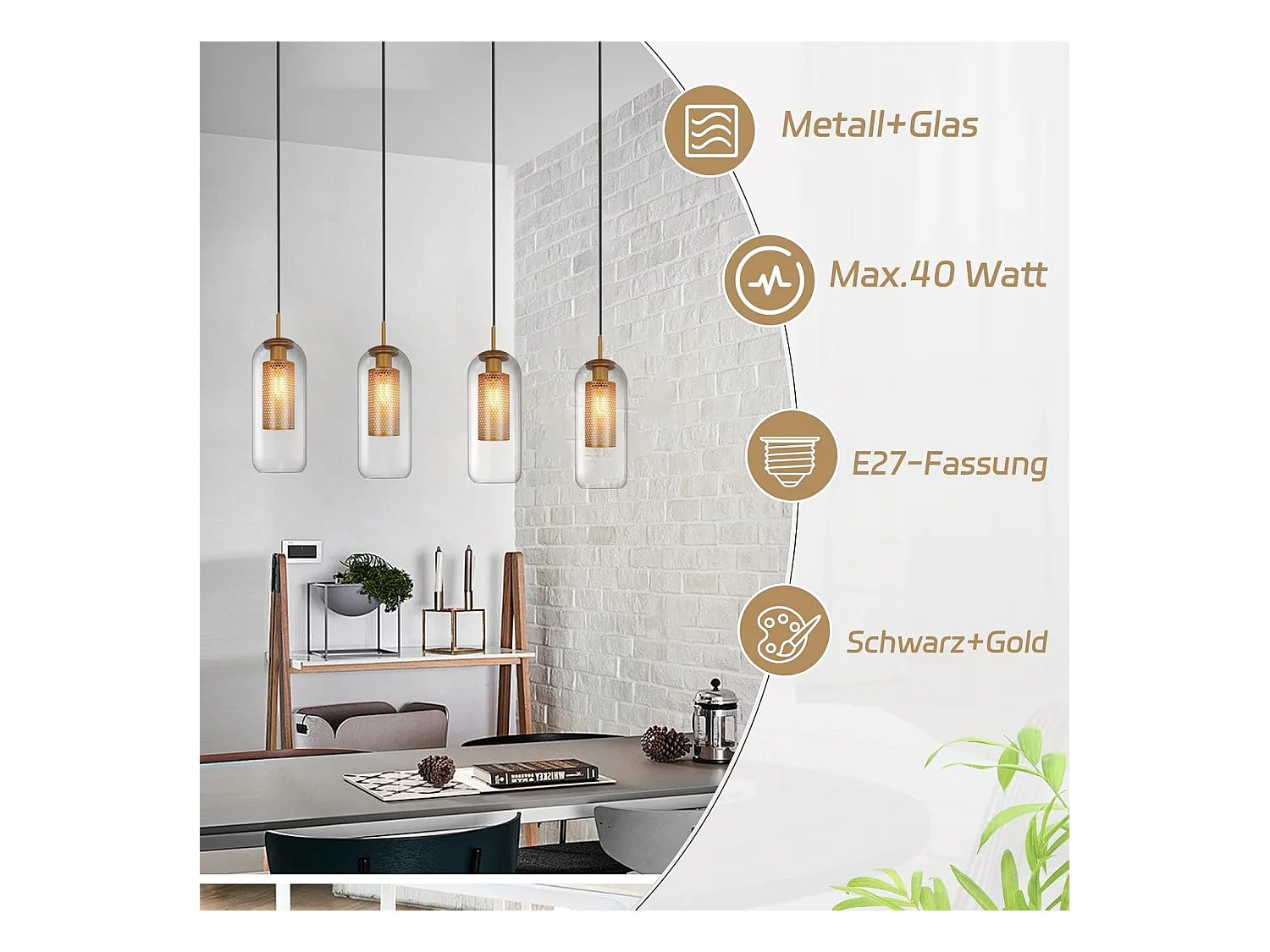 NETTLIFE Suspension table de salle à manger en verre - 1 flamme Vintage E27 Lampe à suspendre noir