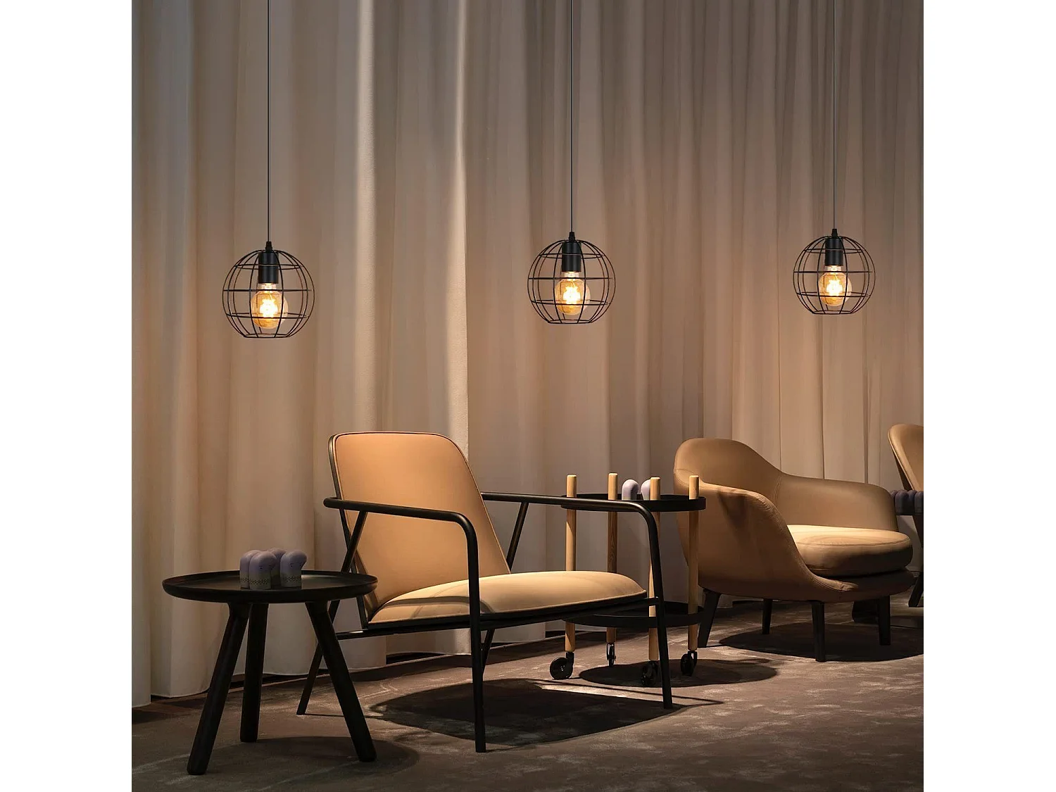 NETTLIFE Suspension Vintage Noir E27 Diam.18.5cm Métal Design de la boule Industrielle Lampe de Cuisine pour Salon Chambre Salle à Manger Max.40W