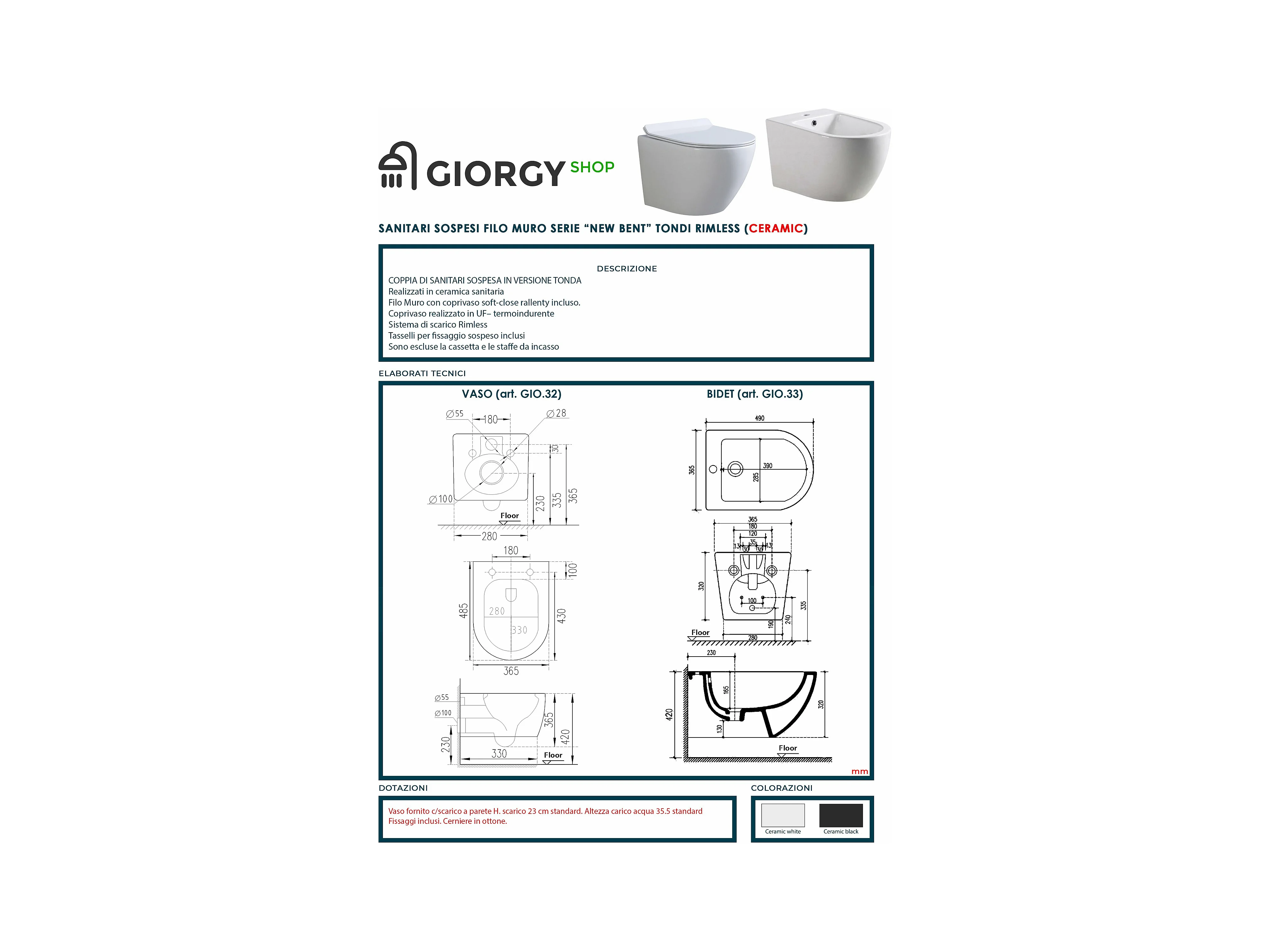 NEW BENT GRIS - SANITAIRE MURAL SANS BRIDE MODELE RONDE GRIS MAT