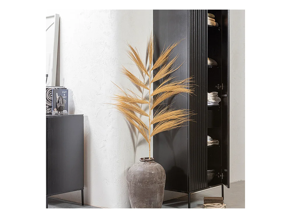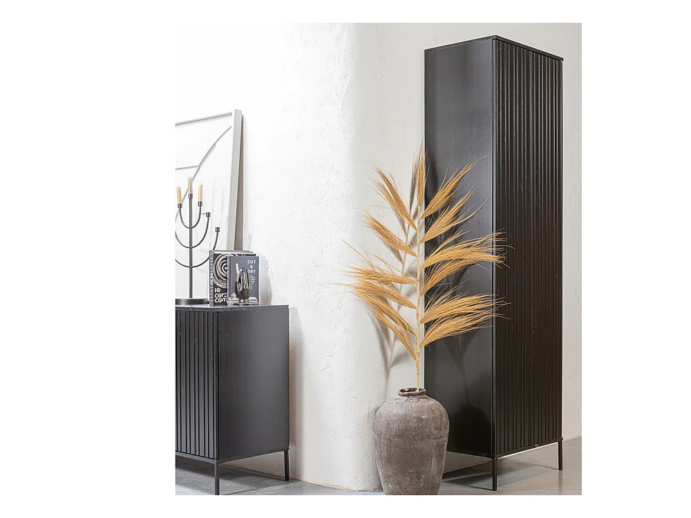 New Gravure - Colonne de rangement en bois 2 portes 1 tiroir H210cm - Noir