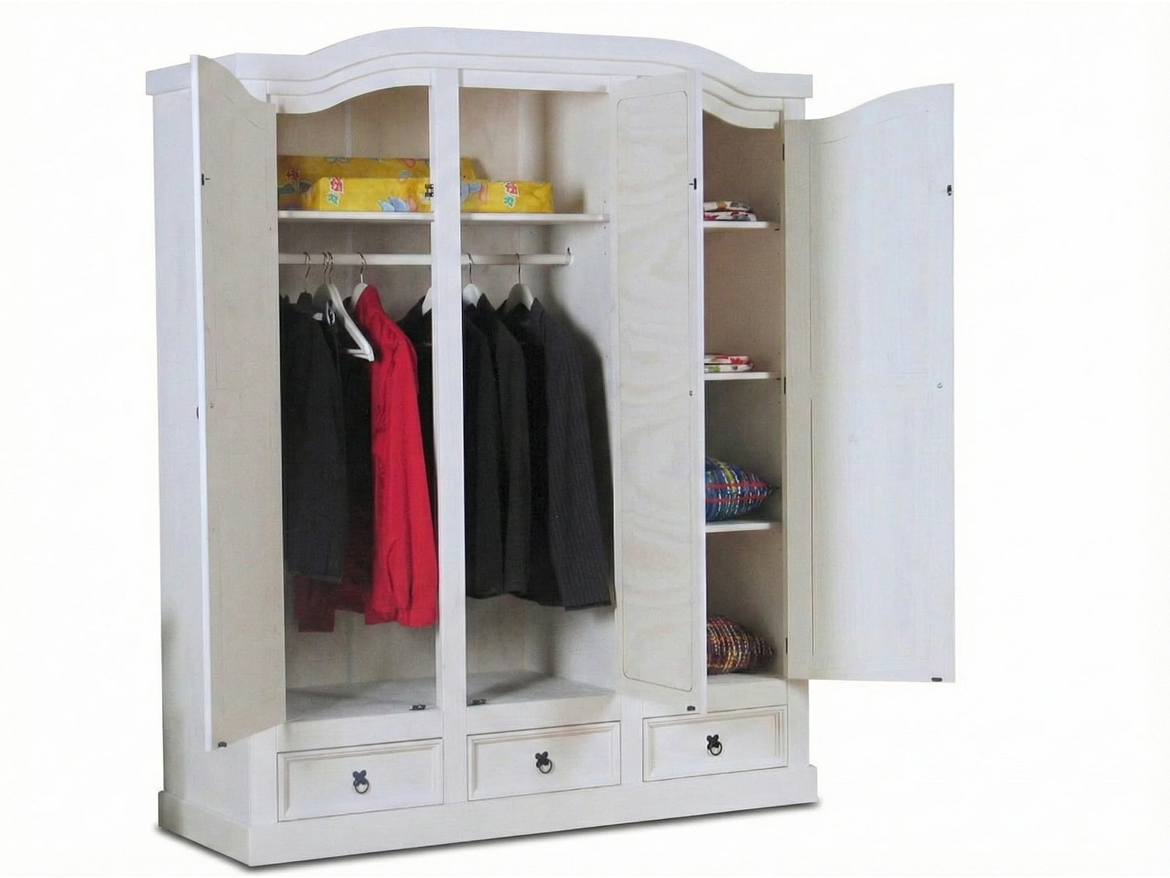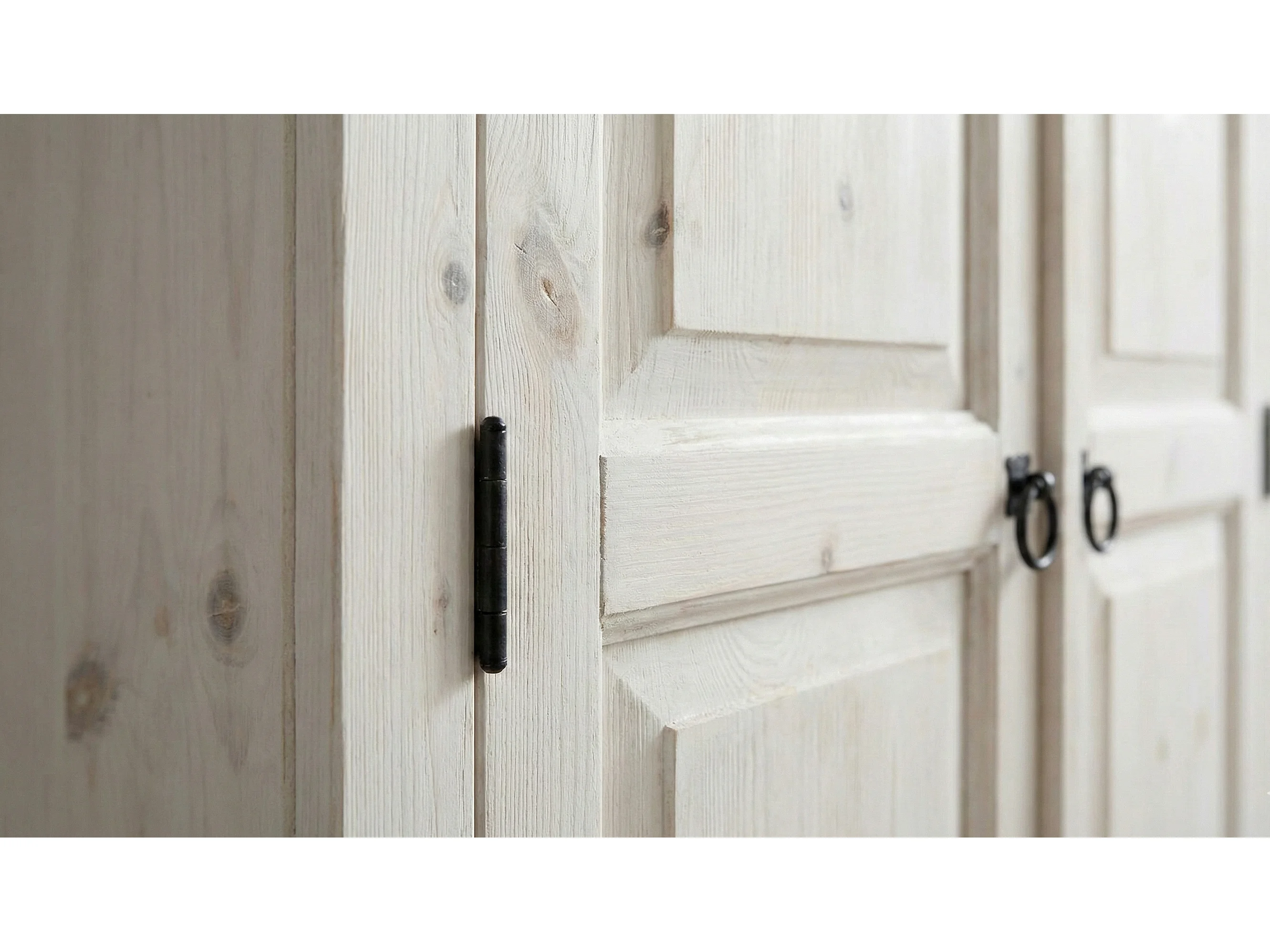 New Mexico Armoire 3 portes avec une porte miroir, 2 portes lambrissées et 3 tiroirs, en blanc ciré.