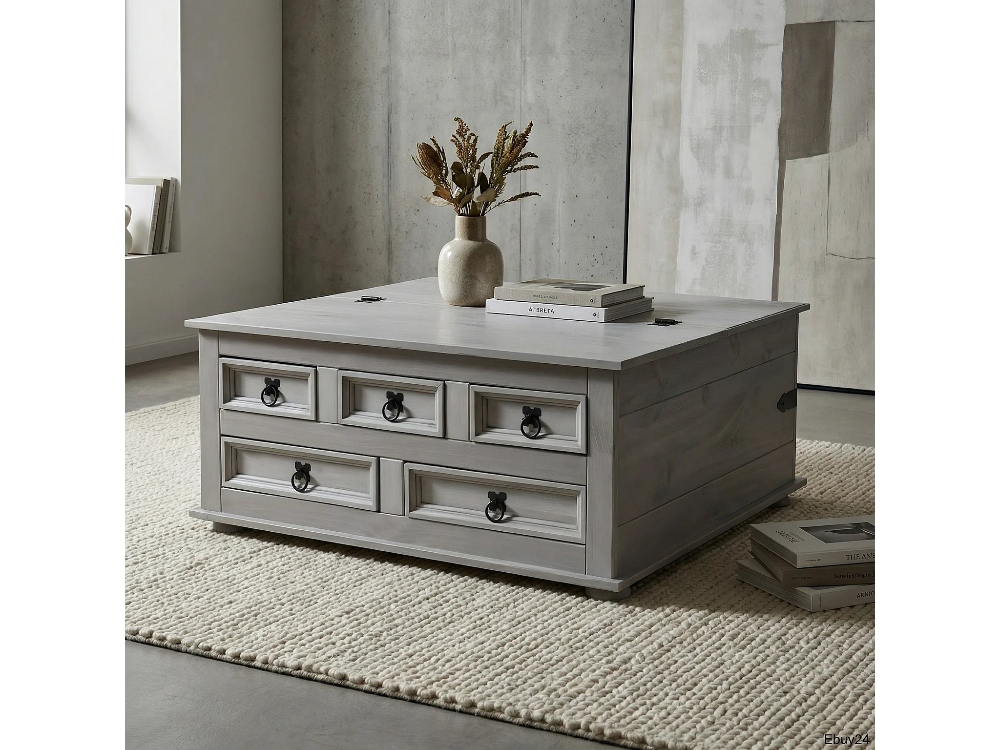 New Mexico Table basse avec 5 tiroirs, 91x91 cm, en gris.