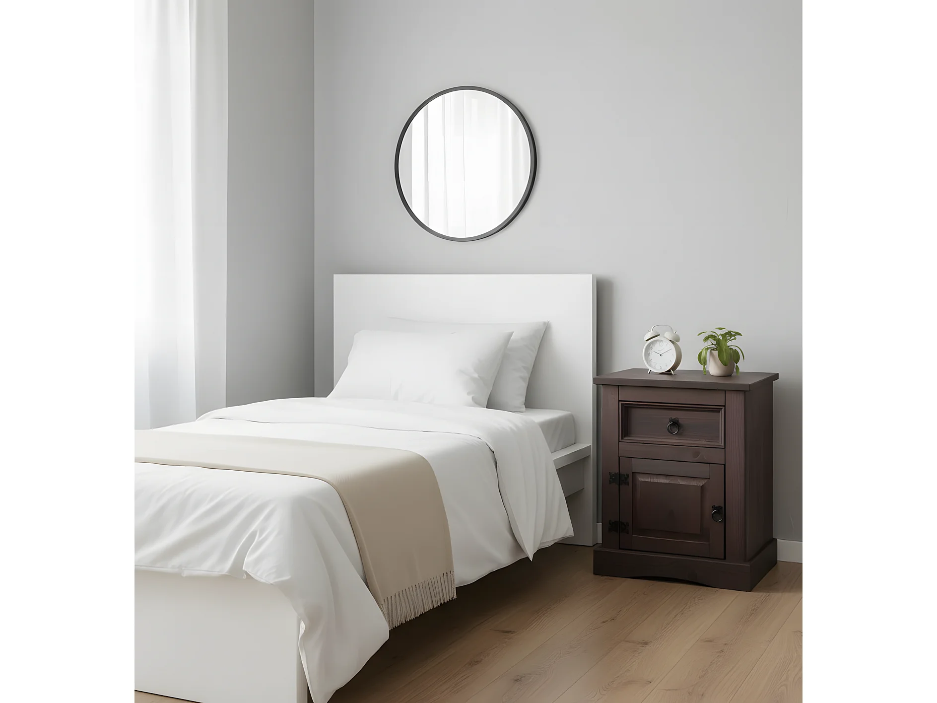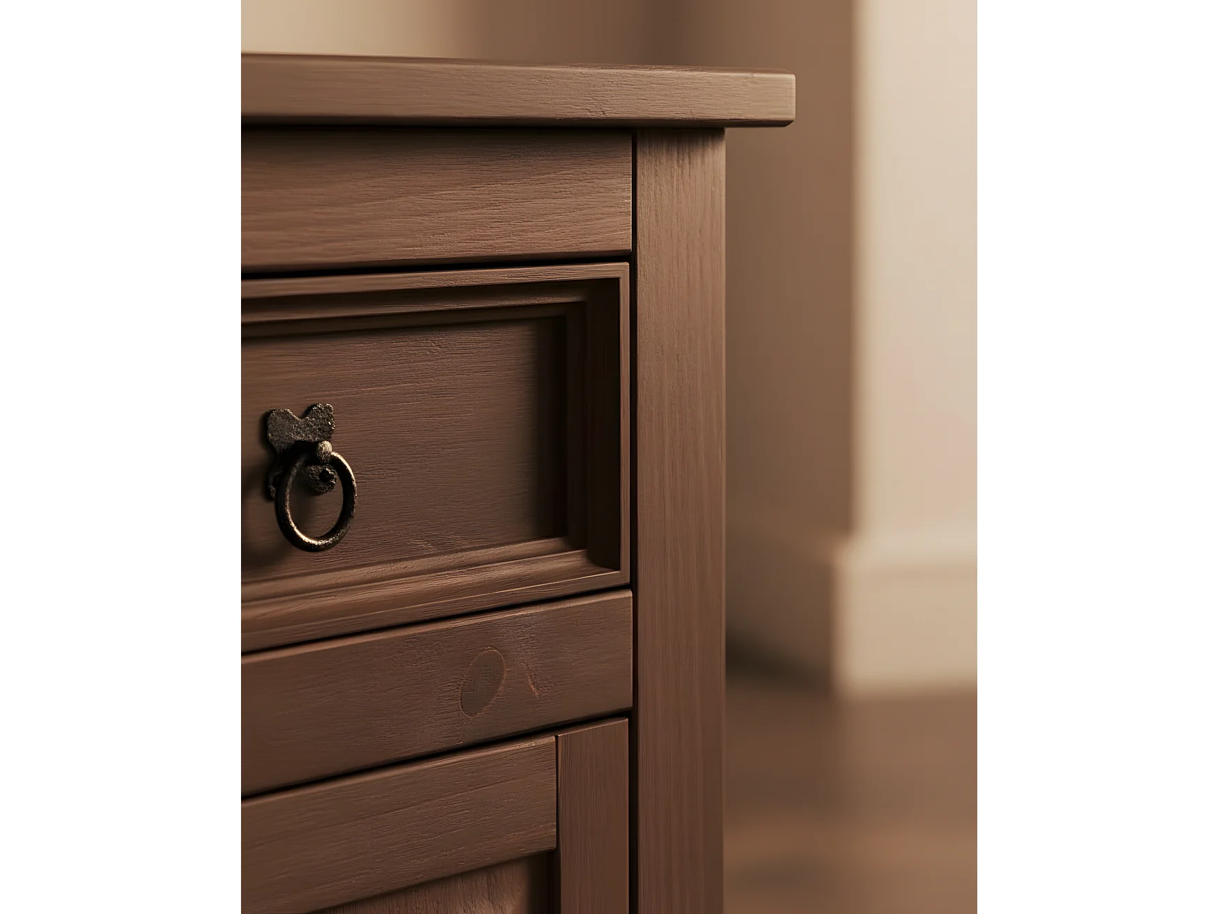 New Mexico Table de chevet, largeur 53 cm, hauteur 66 cm, avec 1 tiroir et 1 porte, teinte/cire dans un style colonial.