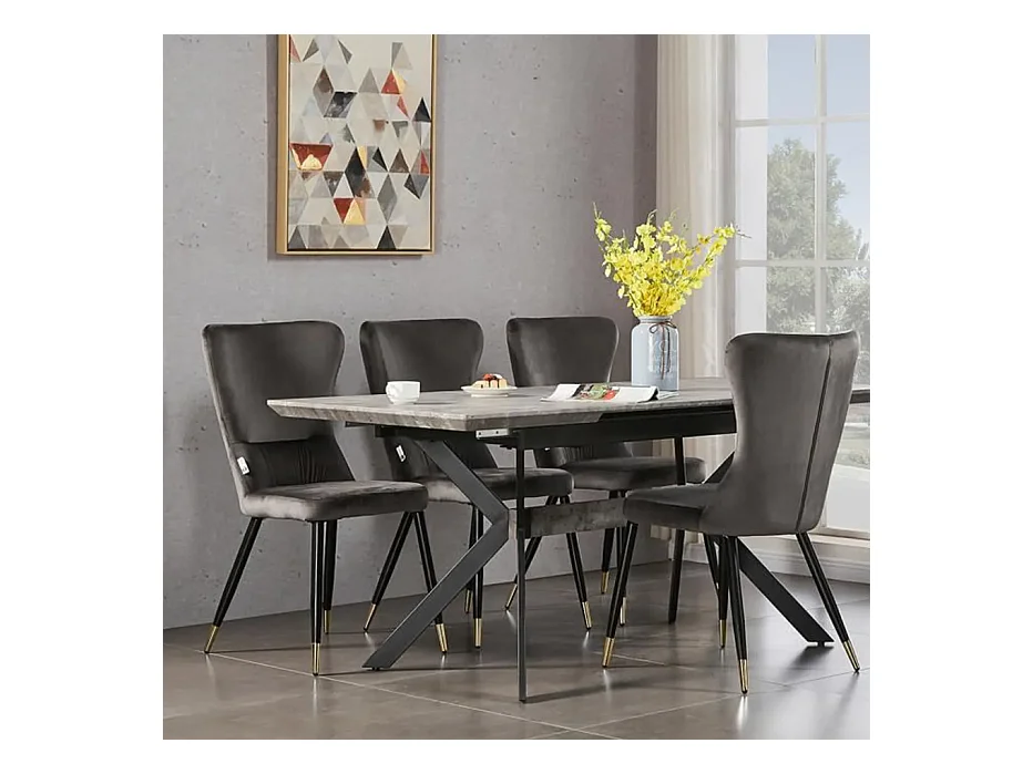 NEW YORK - Lot de 2 Chaises Rétro en Velours Gris - Pieds Coloris Noir & Doré