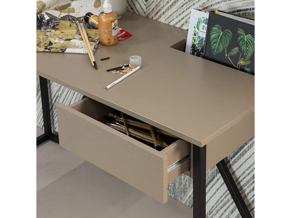 Nex julius - Bureau en bois et métal avec tiroir - Taupe