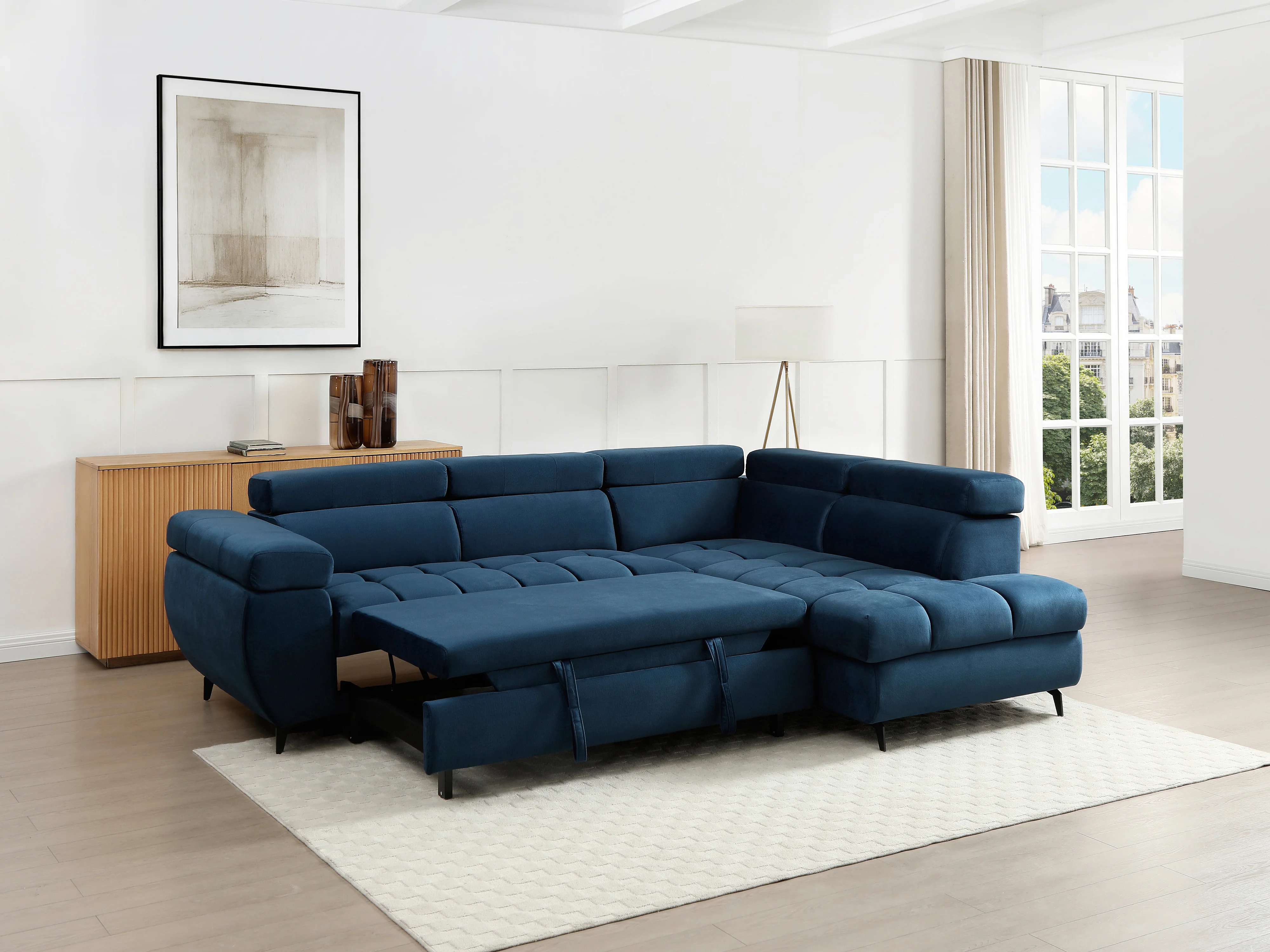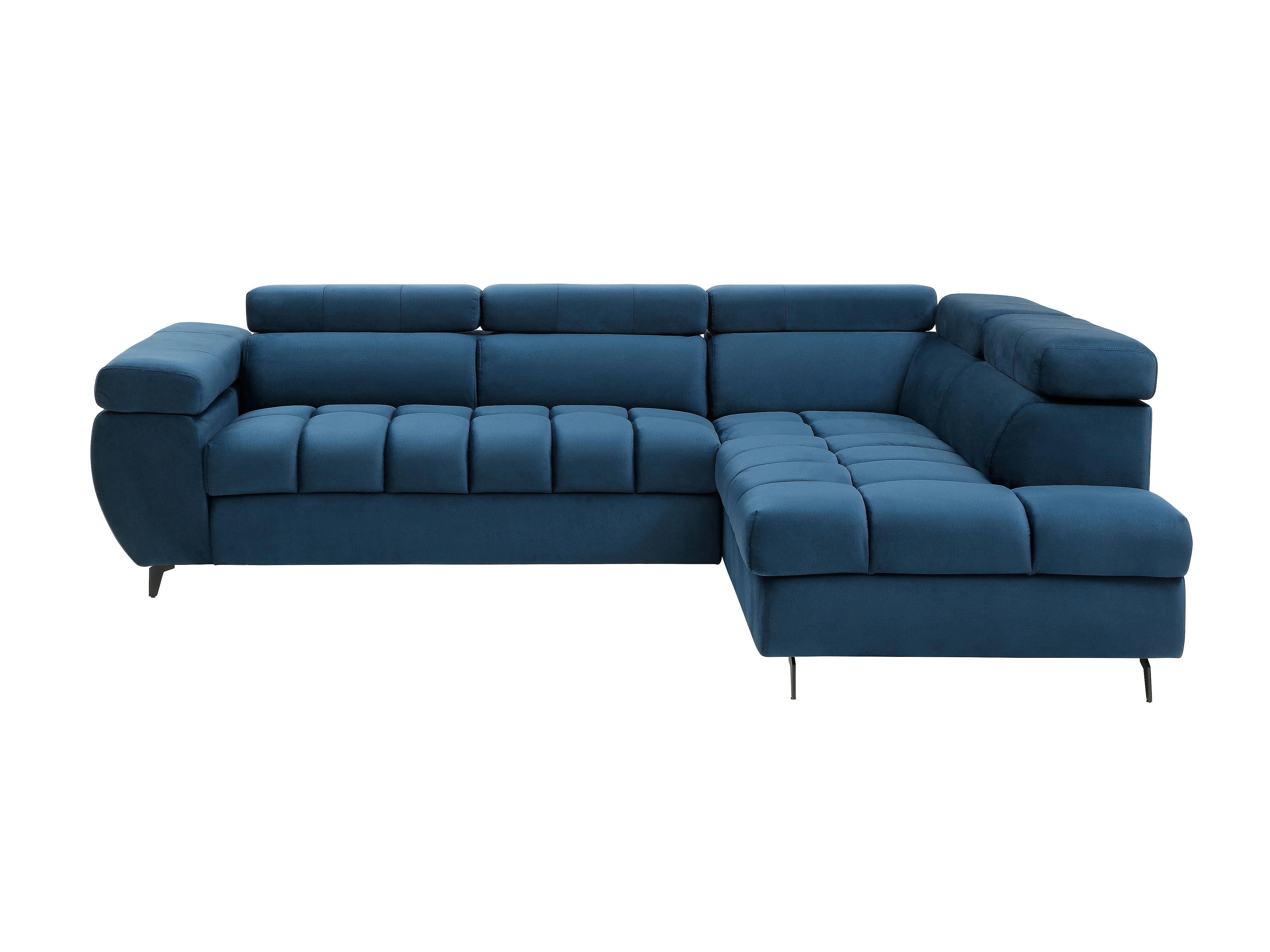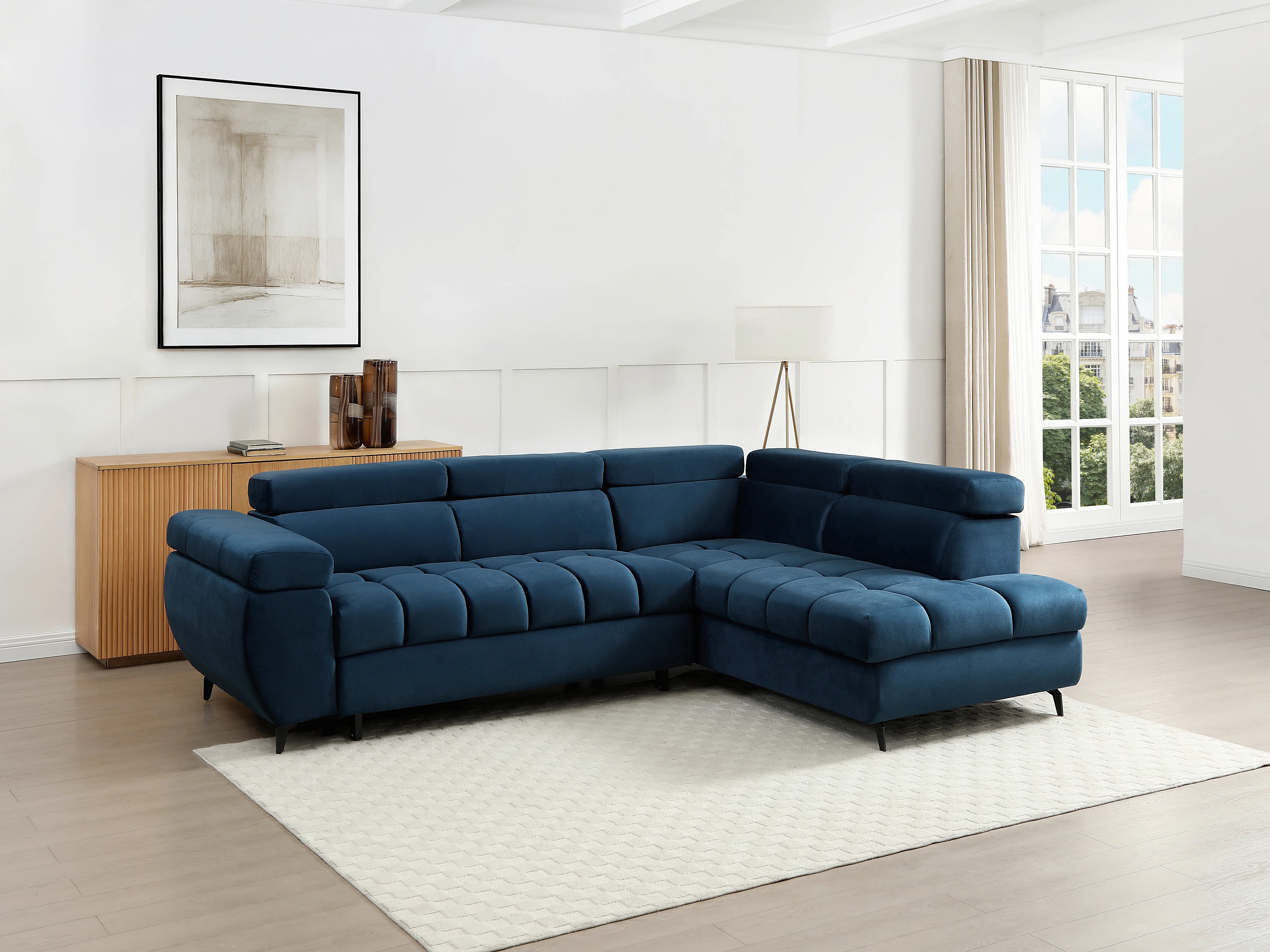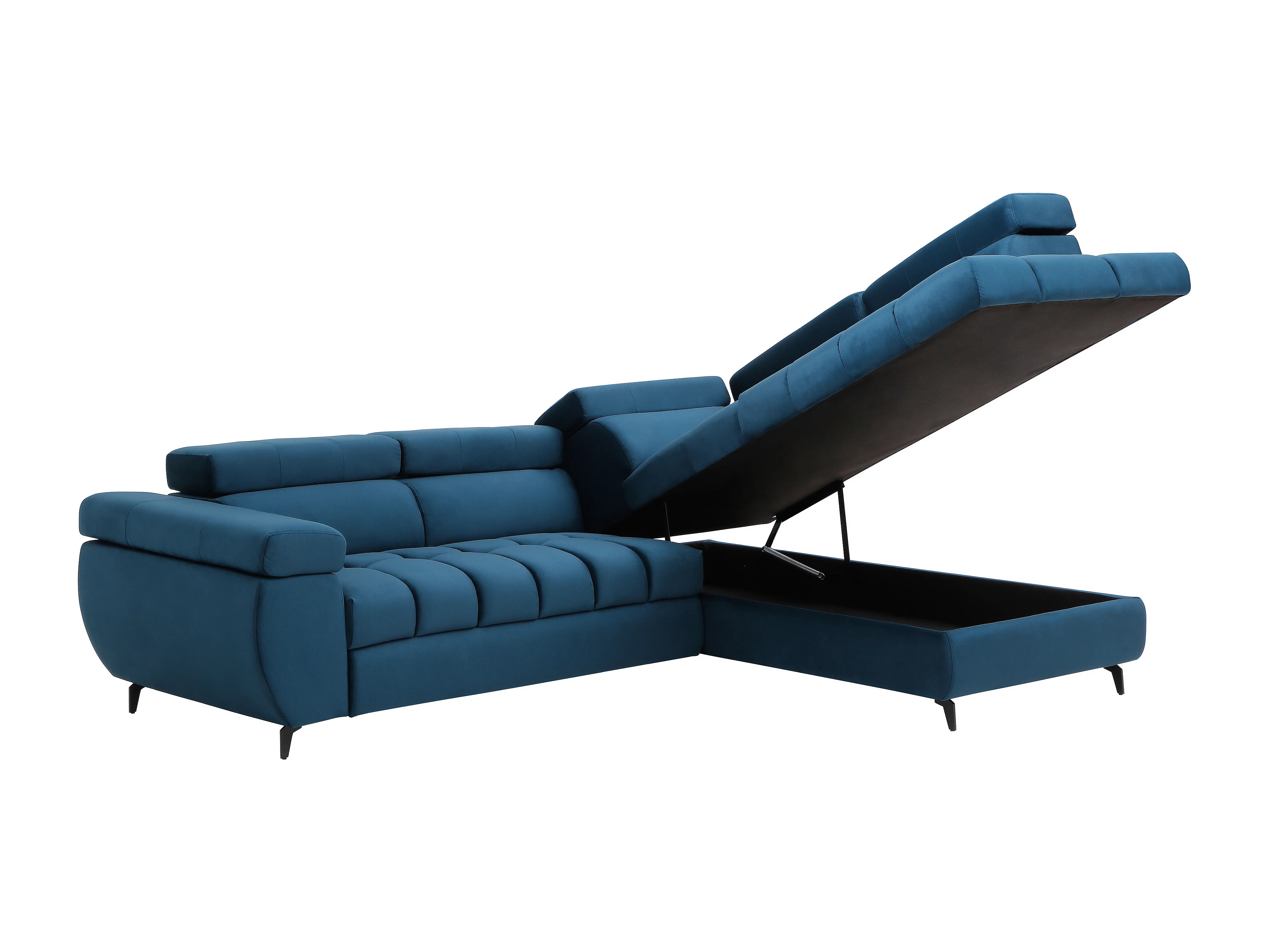 Canapé d'angle droit convertible en velours bleu NIACATO