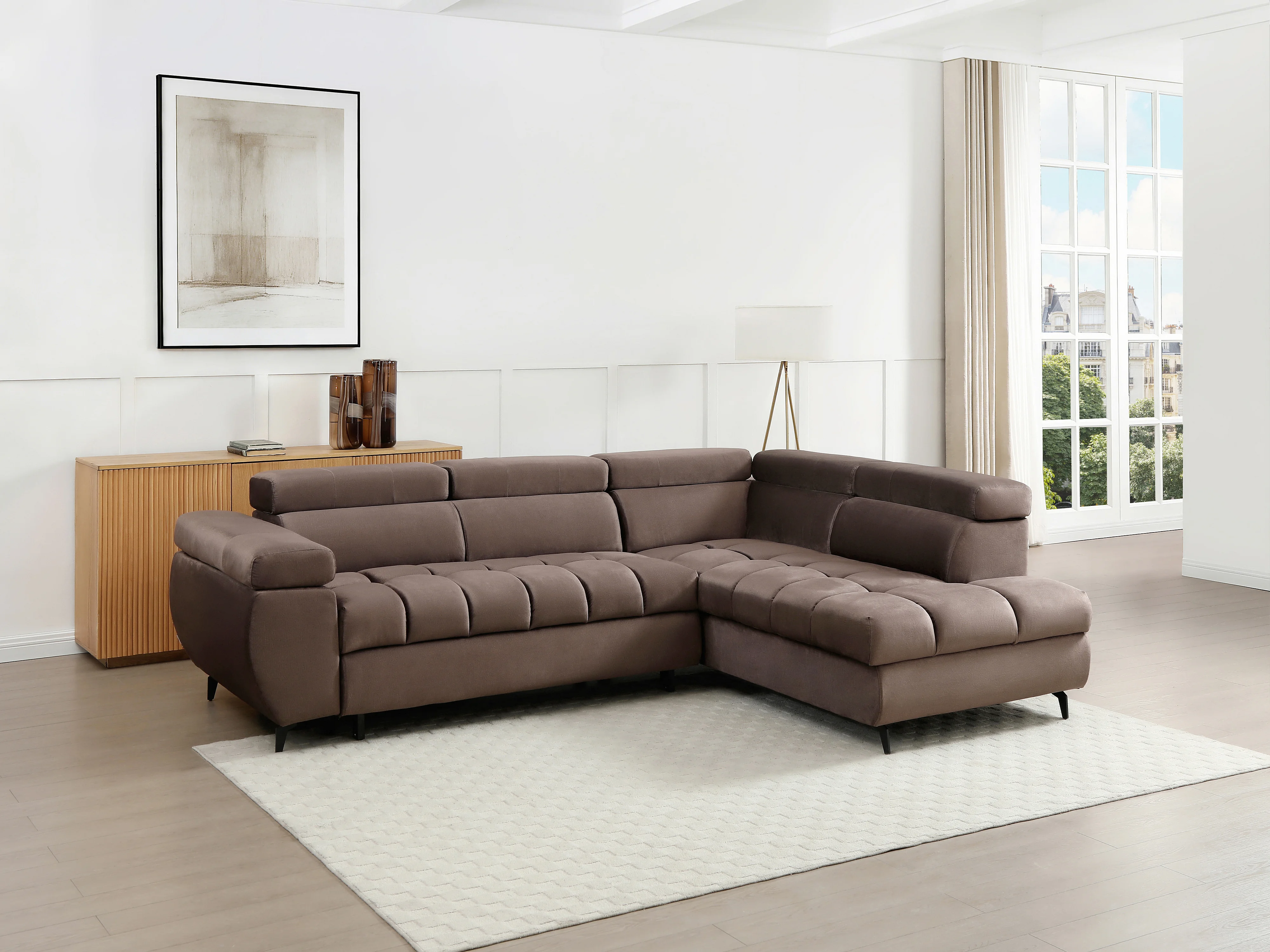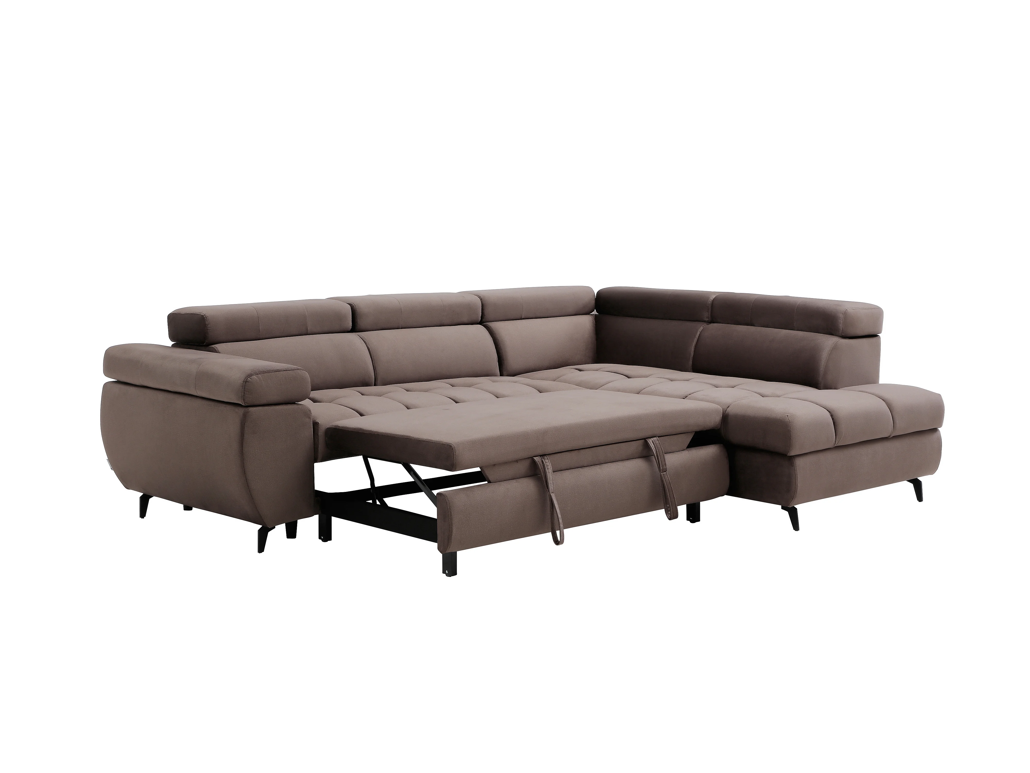 Canapé d'angle droit convertible en velours taupe NIACATO