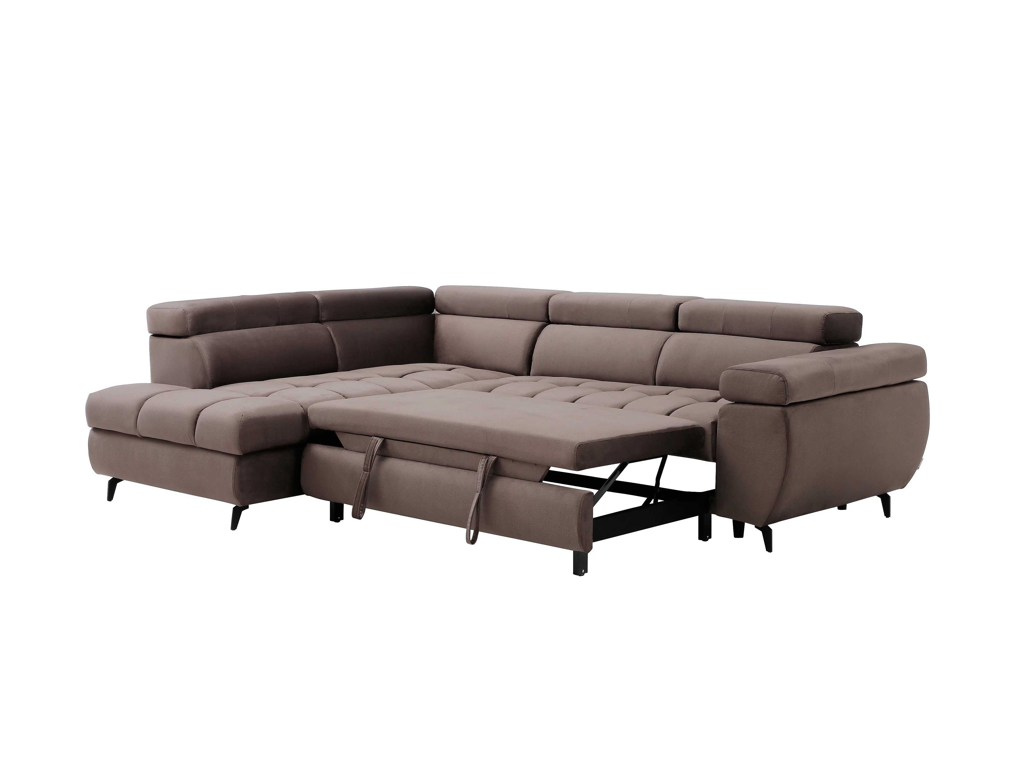 Canapé d'angle gauche convertible en velours taupe NIACATO