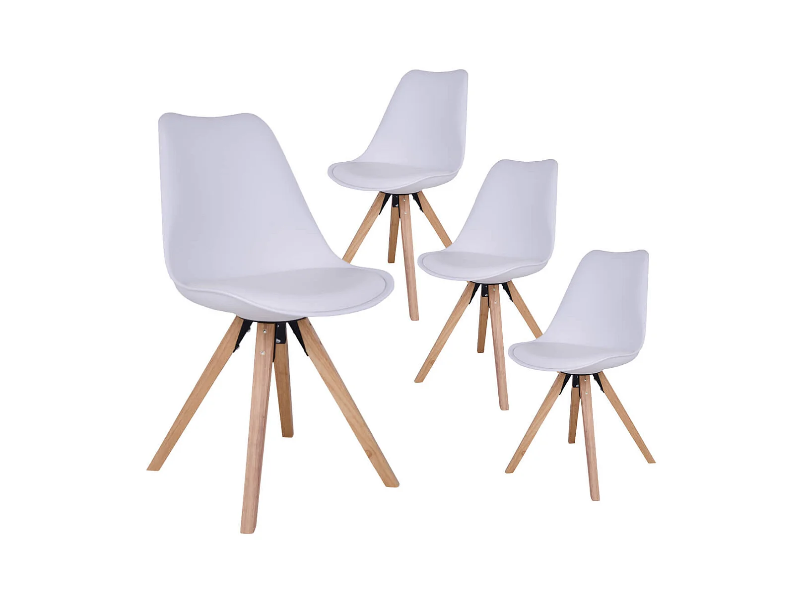 NIBBEN - Lot de 4 Chaises Blanches et Piétement Hévéa