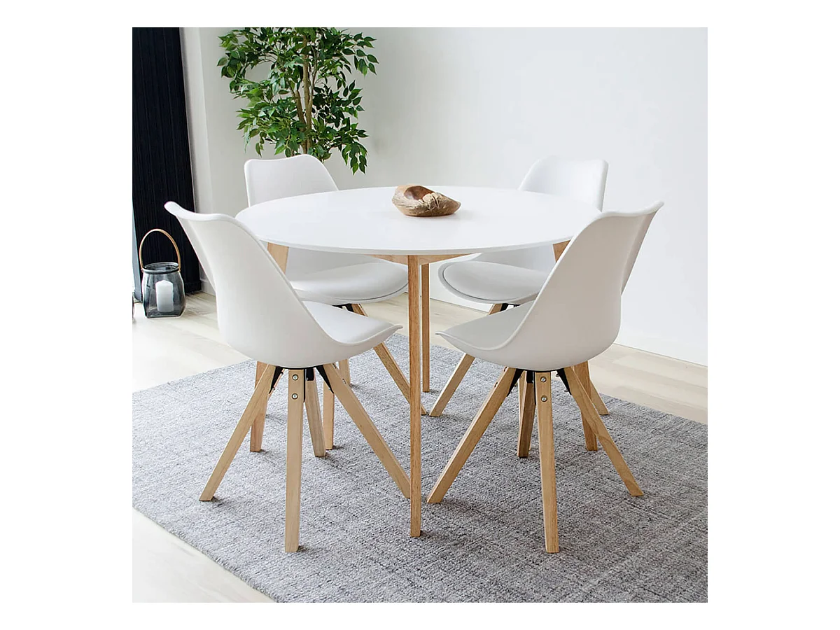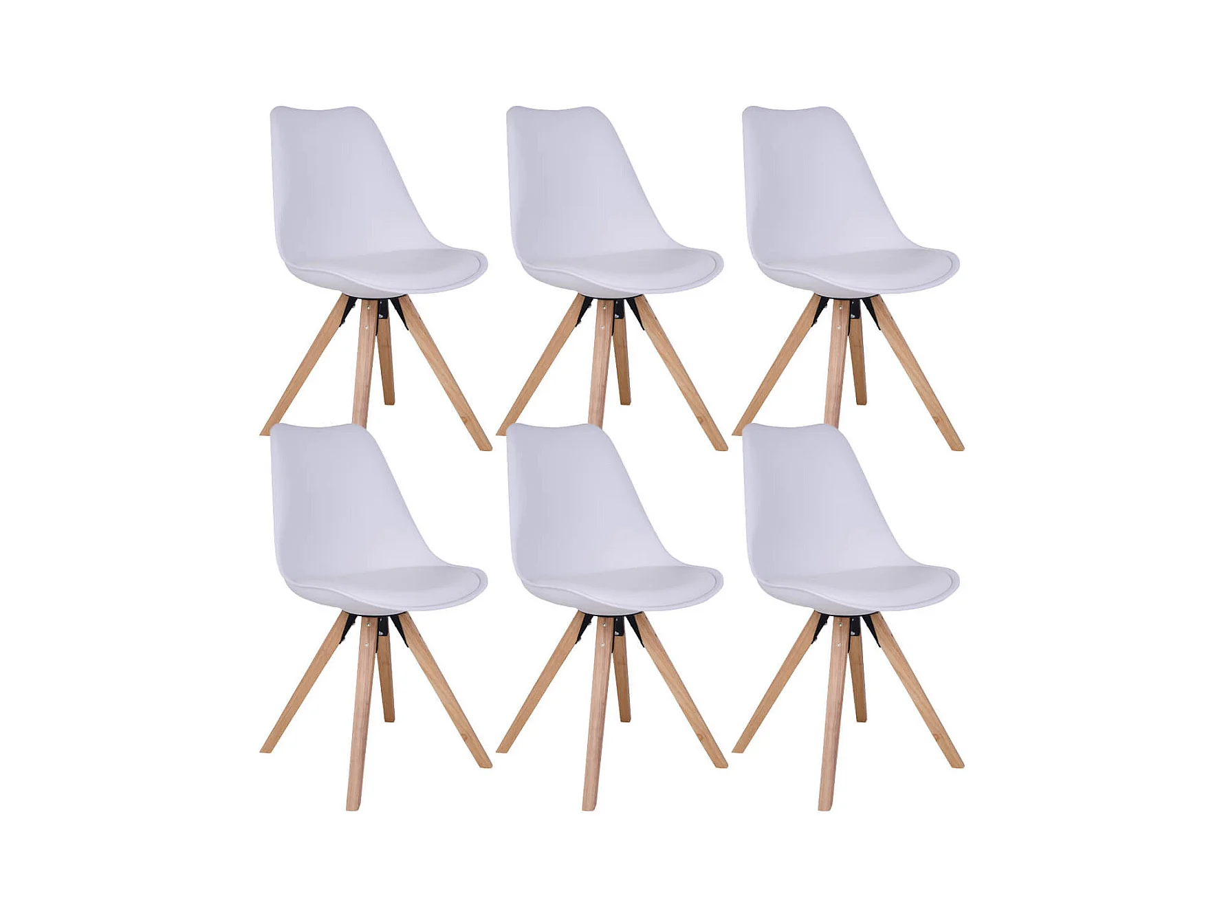 NIBBEN - Lot de 6 Chaises Blanches et Piétement Hévéa