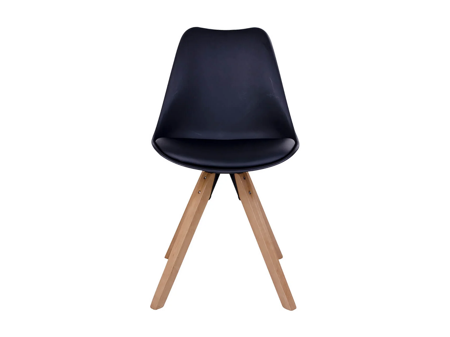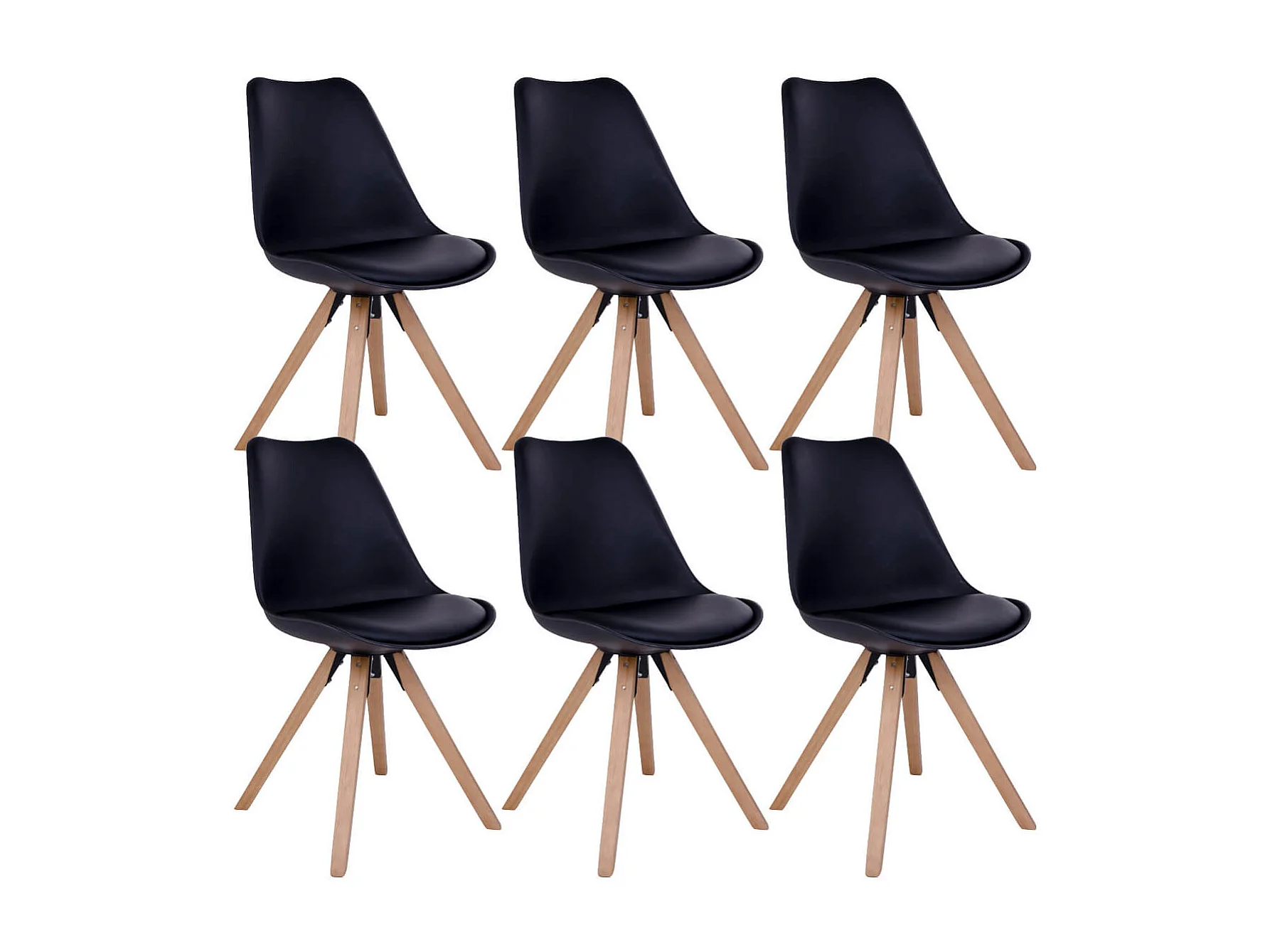 NIBBEN - Lot de 6 Chaises Noires et Piétement Hévéa