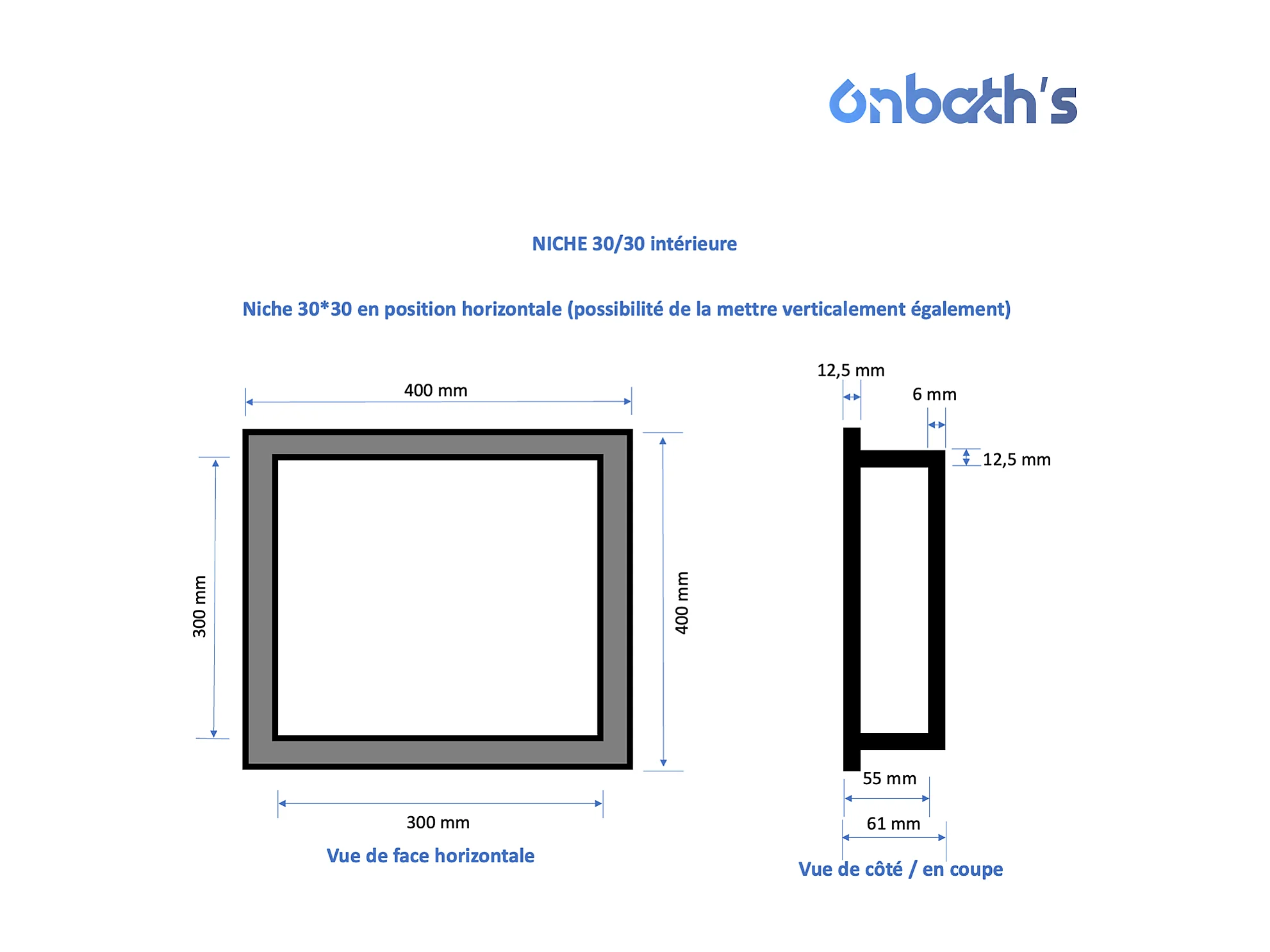 Niche à carreler étanche 30x30 cm – profondeur 6 cm – avec natte étanche – NICHE30/30-INT-OB
