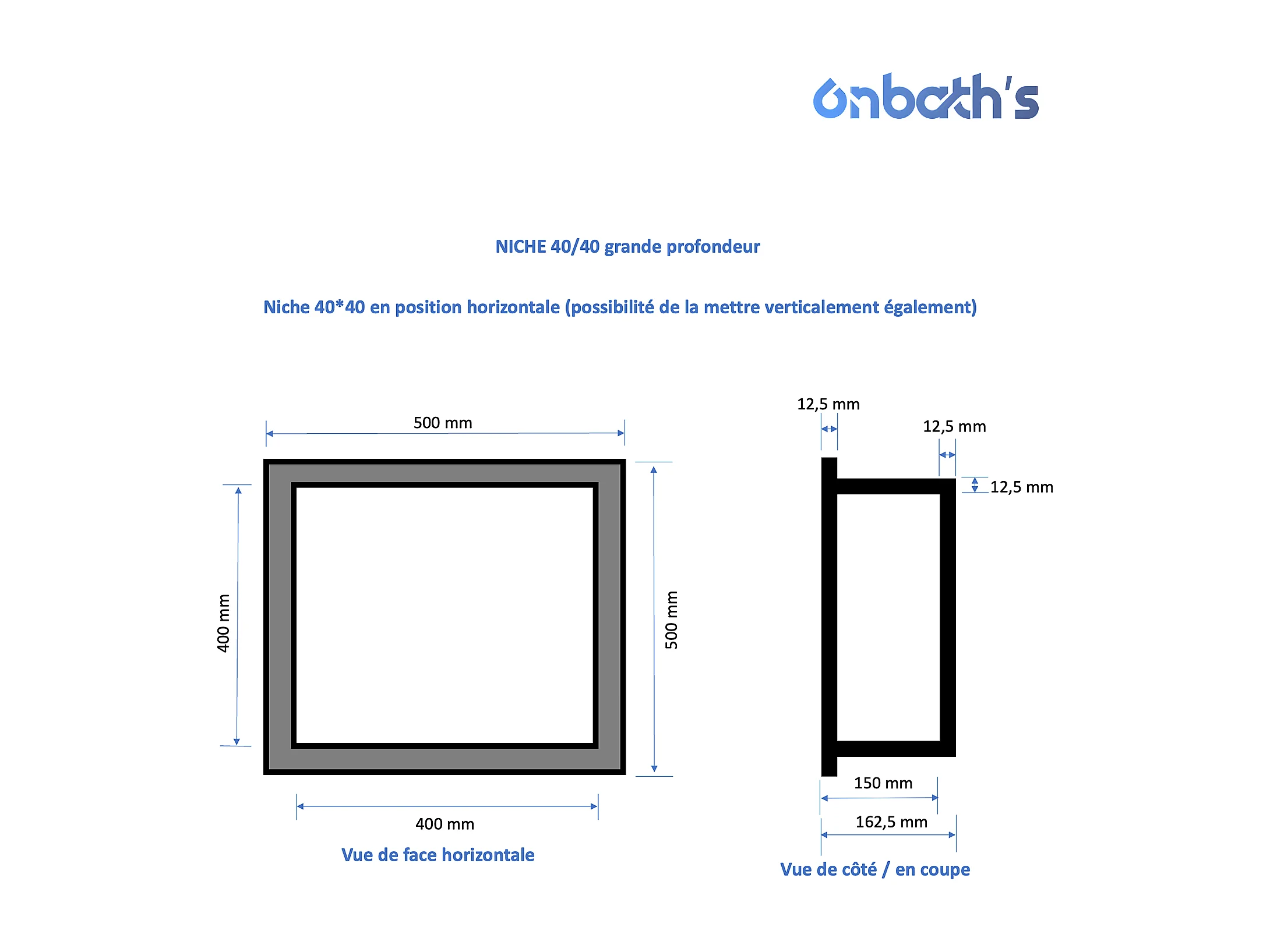 Niche à carreler étanche 40x40 cm – profondeur 6 cm – avec natte étanche – NICHE40/40-INT-OB