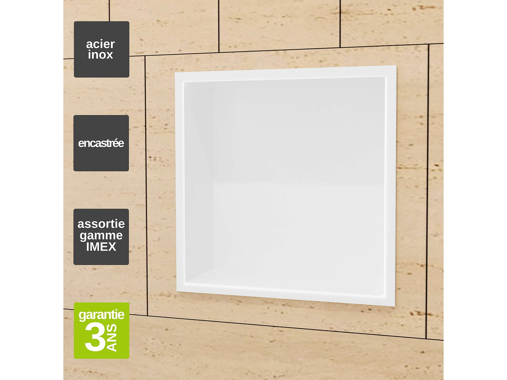 Niche de Douche Mural 33 x 33 cm - Rangement Salle de Bain en finition Blanc Satiné - ATLANTIC