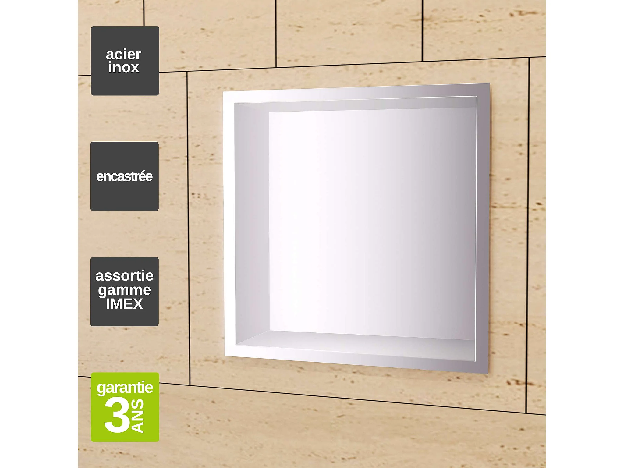 Niche de Douche Mural 33 x 33 cm - Rangement Salle de Bain en finition Niquel Brossé - ATLANTIC