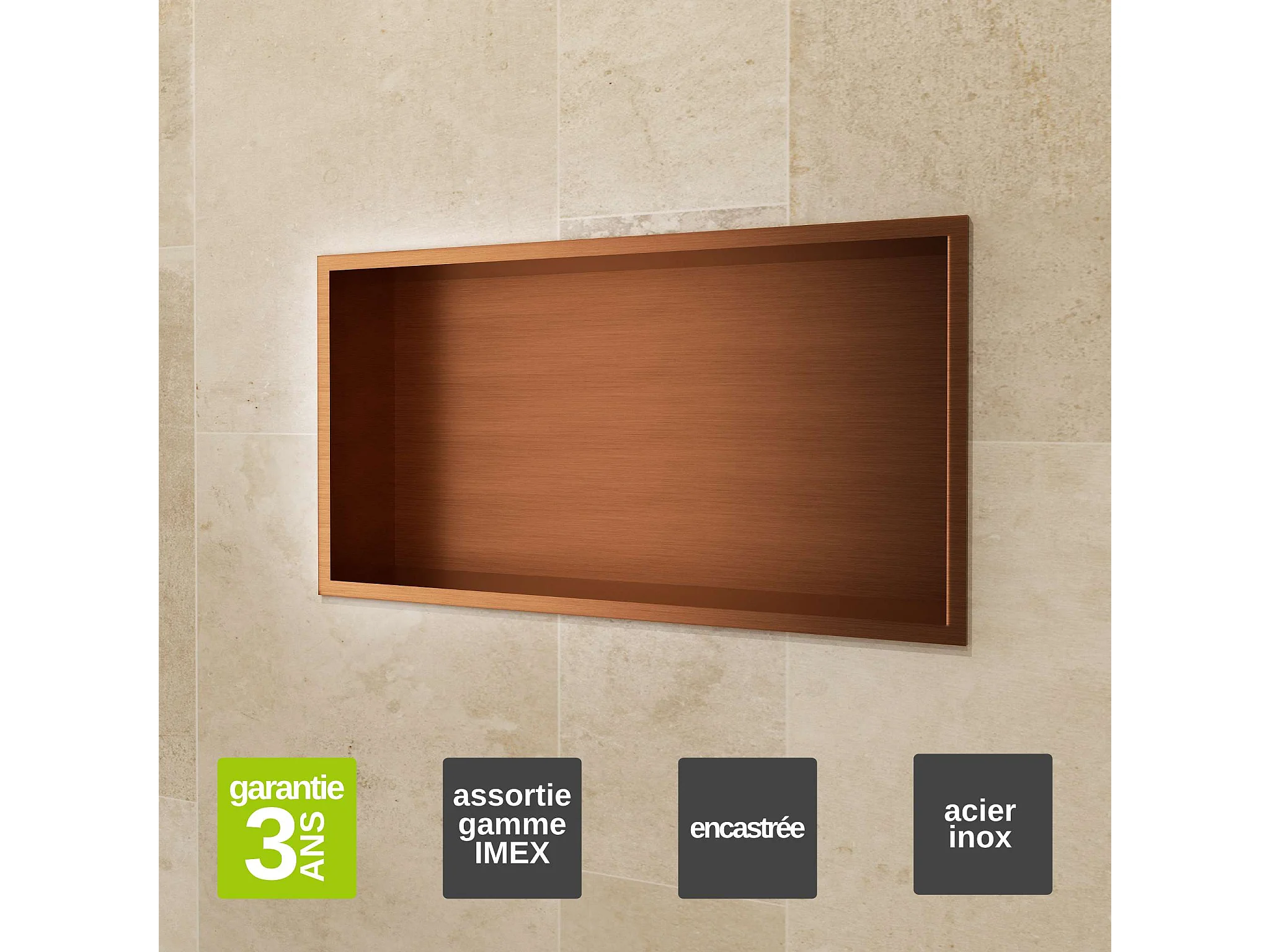 Niche de Douche Mural 63 x 33 cm - Rangement Salle de Bain en finition Cuivré - PACIFIC