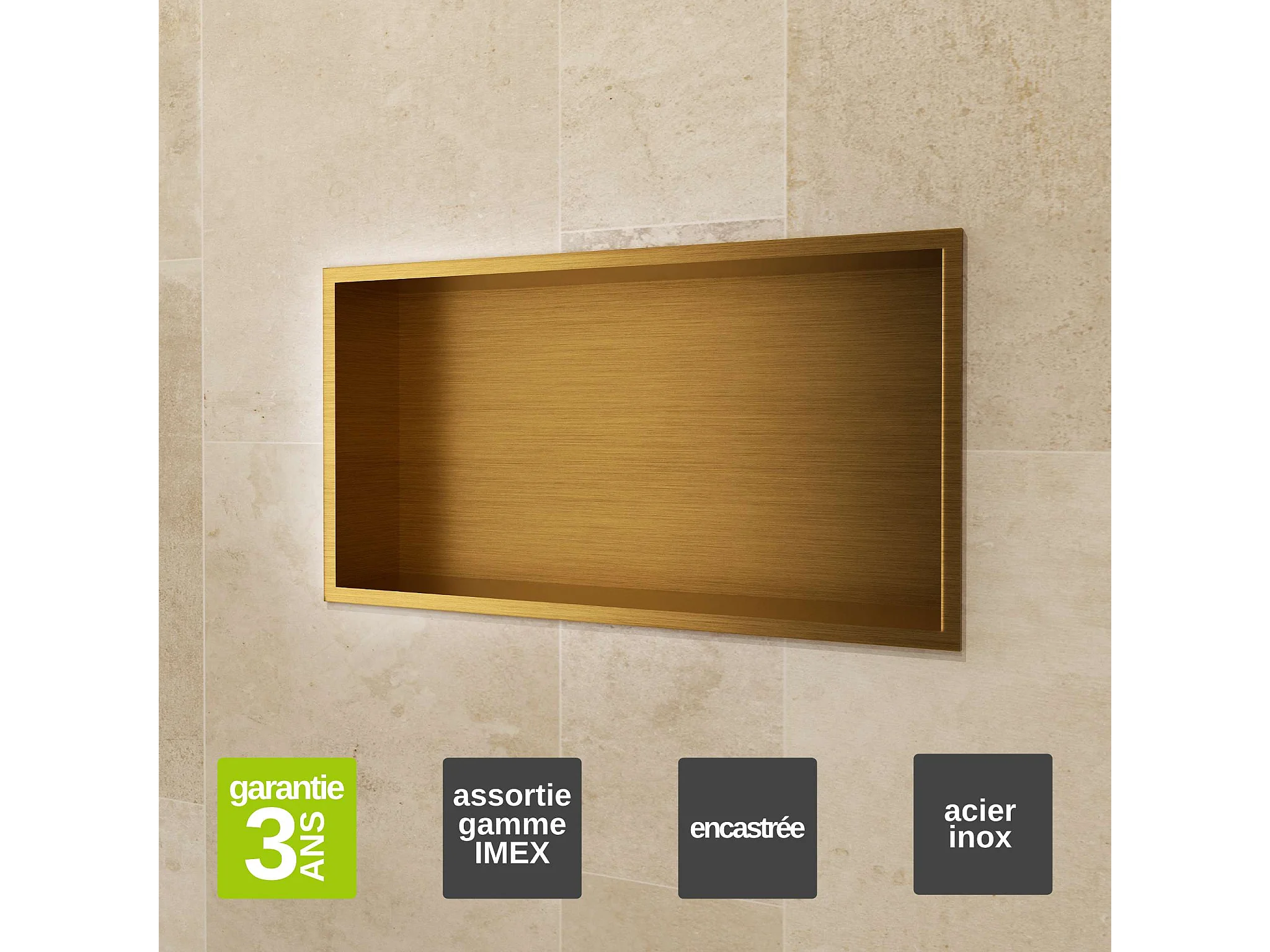 Niche de Douche Mural 63 x 33 cm - Rangement Salle de Bain en finition Or Brossé - PACIFIC
