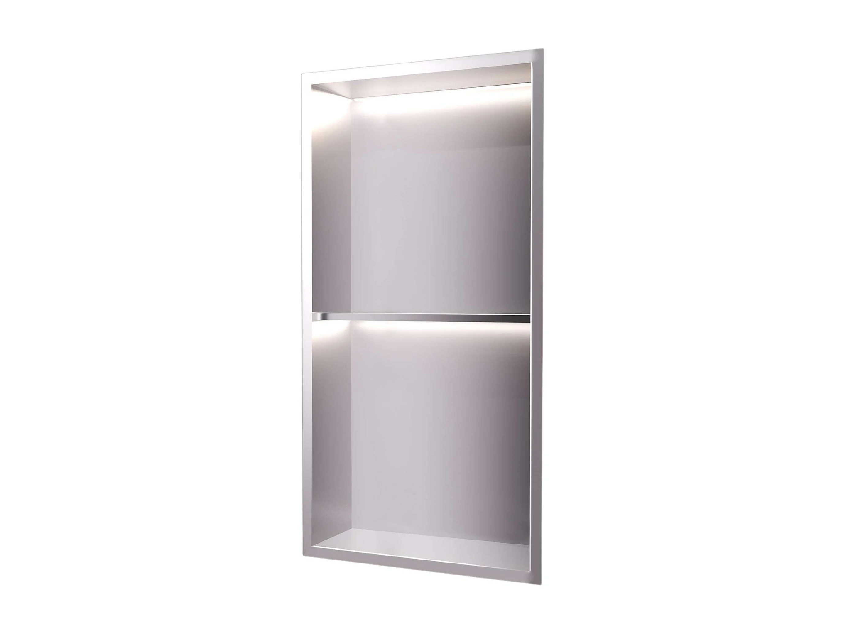 Niche de Douche Mural Éclairage Led 33 x 63 cm - Rangement Salle de Bain en finition Niquel Brossé - MARSHALL