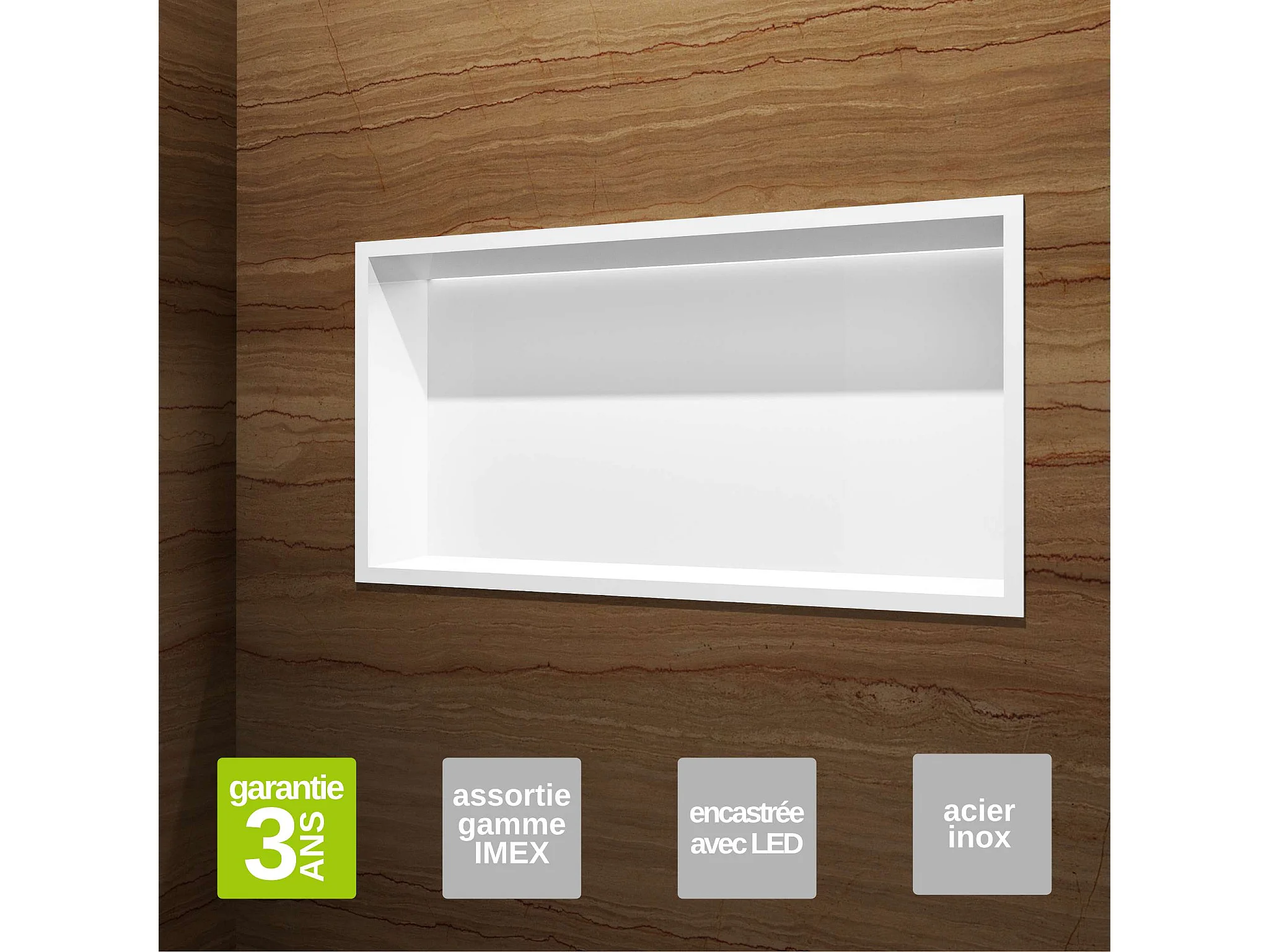 Niche de Douche Mural Éclairage Led 63 x 33 cm - Rangement Salle de Bain en finition Blanc Satiné - OCEANIC