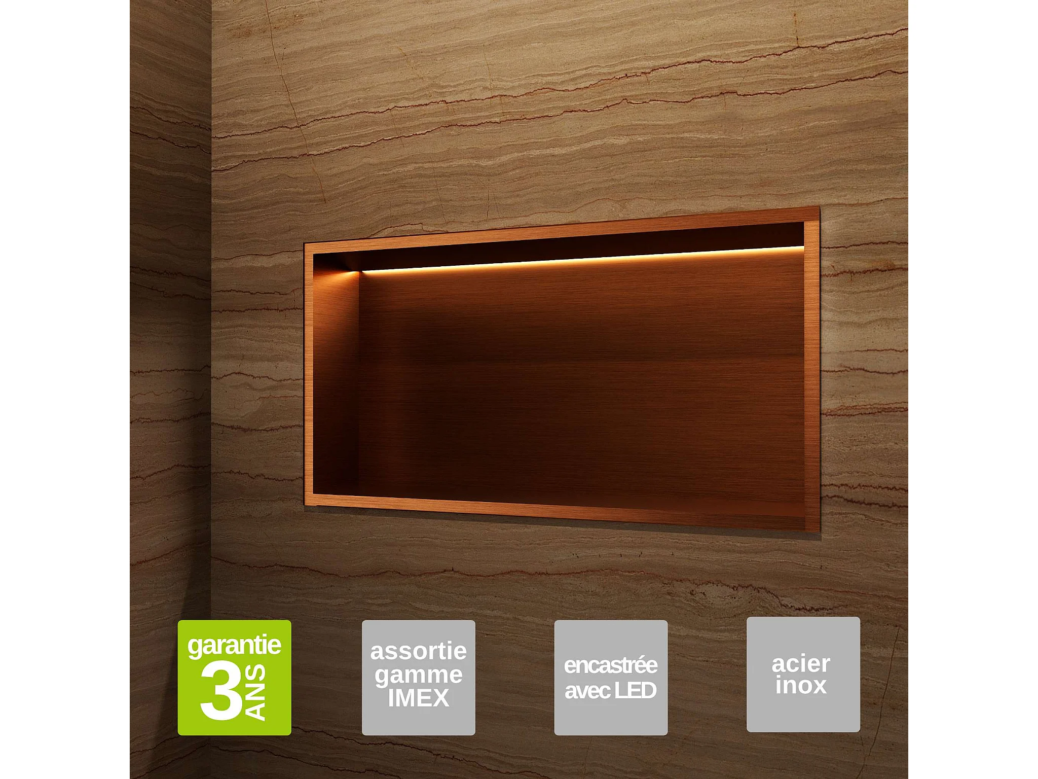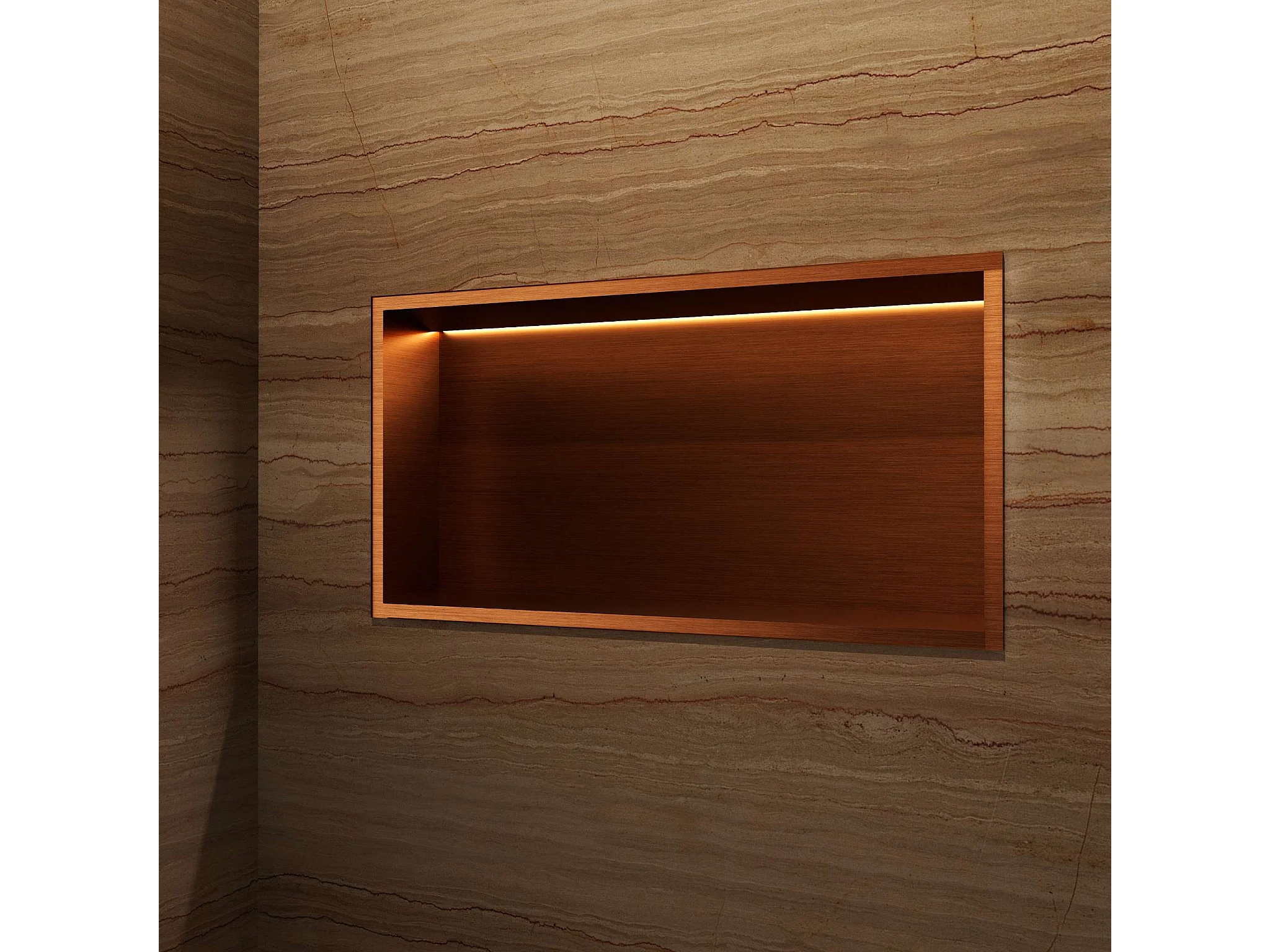 Niche de Douche Mural Éclairage Led 63 x 33 cm - Rangement Salle de Bain en finition Cuivré - OCEANIC