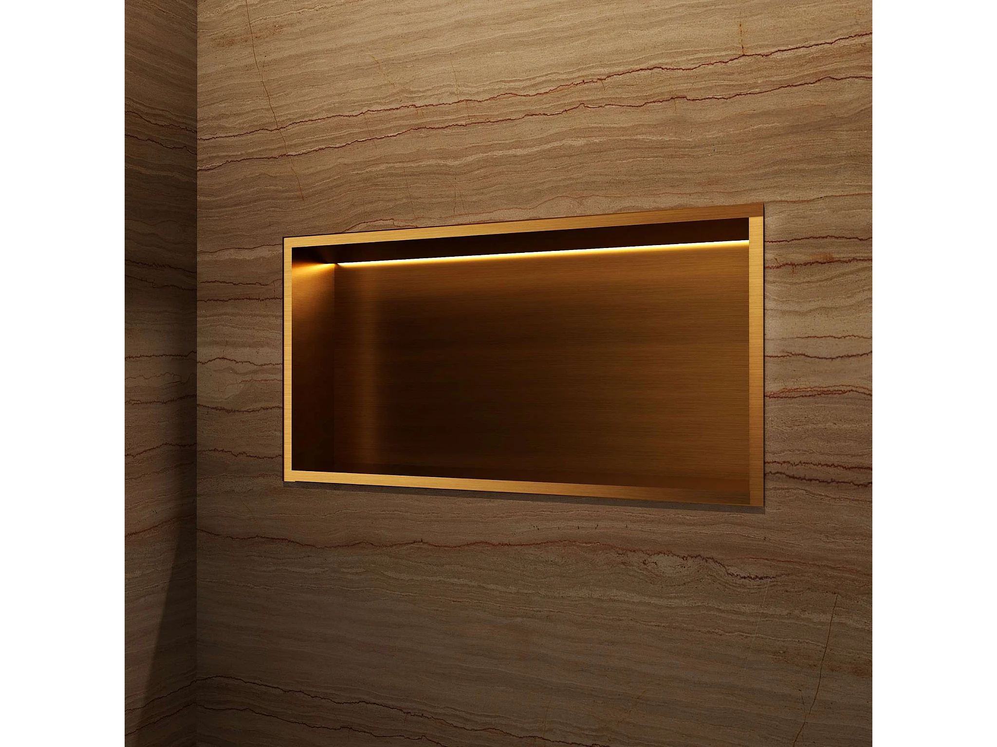 Niche de Douche Mural Éclairage Led 63 x 33 cm - Rangement Salle de Bain en finition Or Brossé - OCEANIC